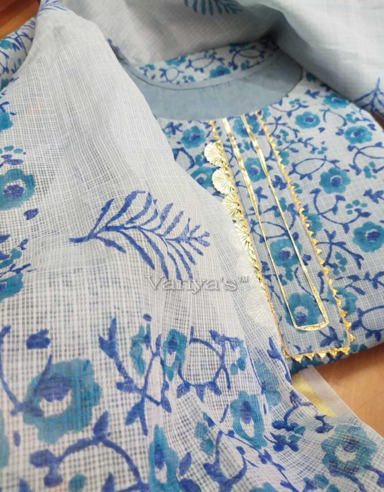 Pure hand block kota doria fabric of kurti and cotton staright pant paired with kota doria hand block duppata.