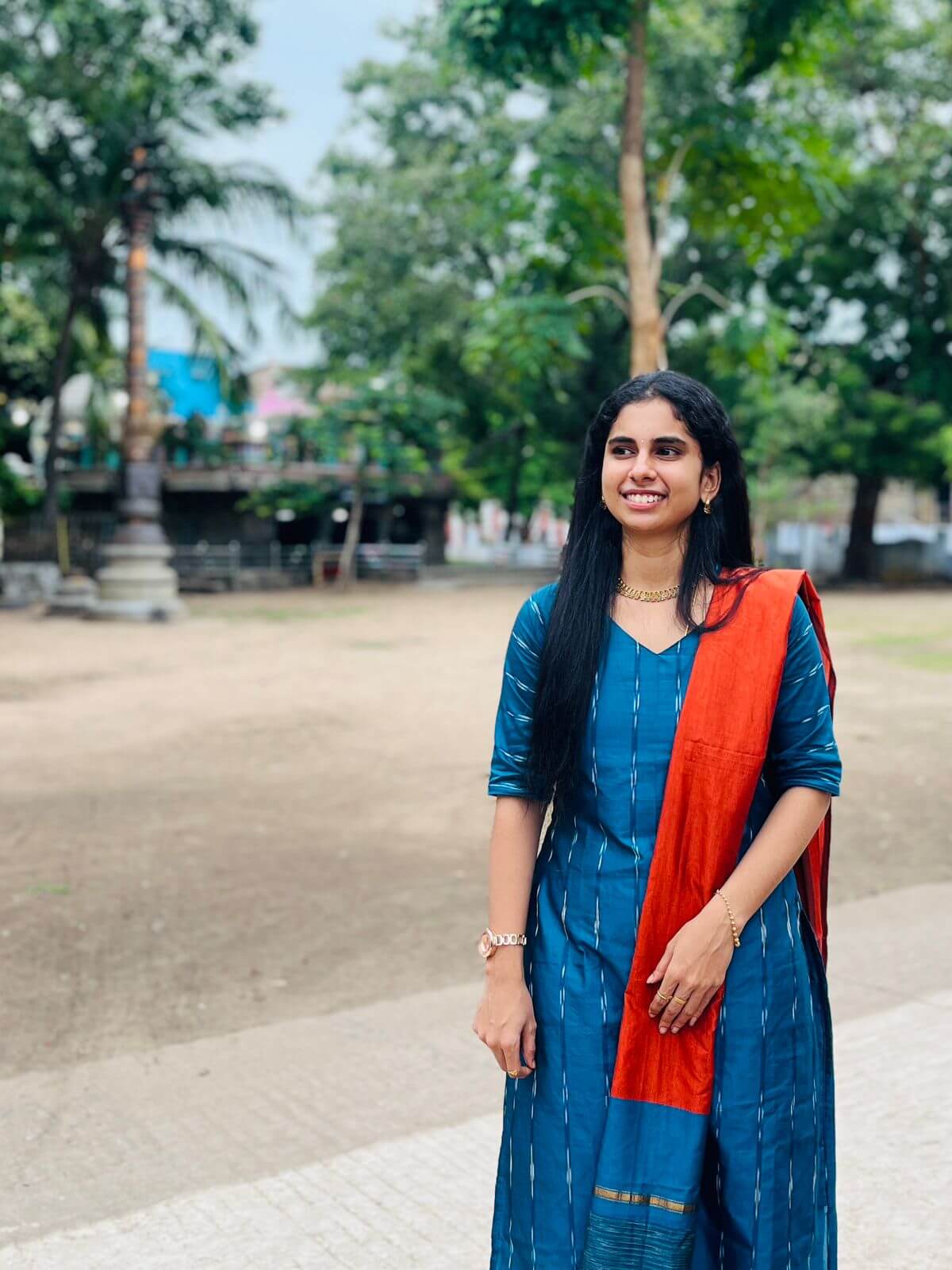 Premium pochampally ikkath V-neck weaved kurti with attached cotton lining