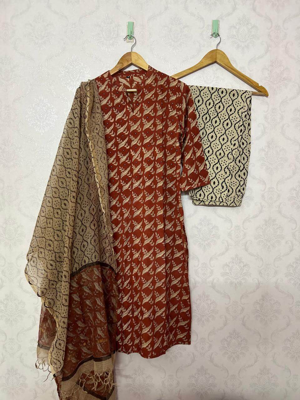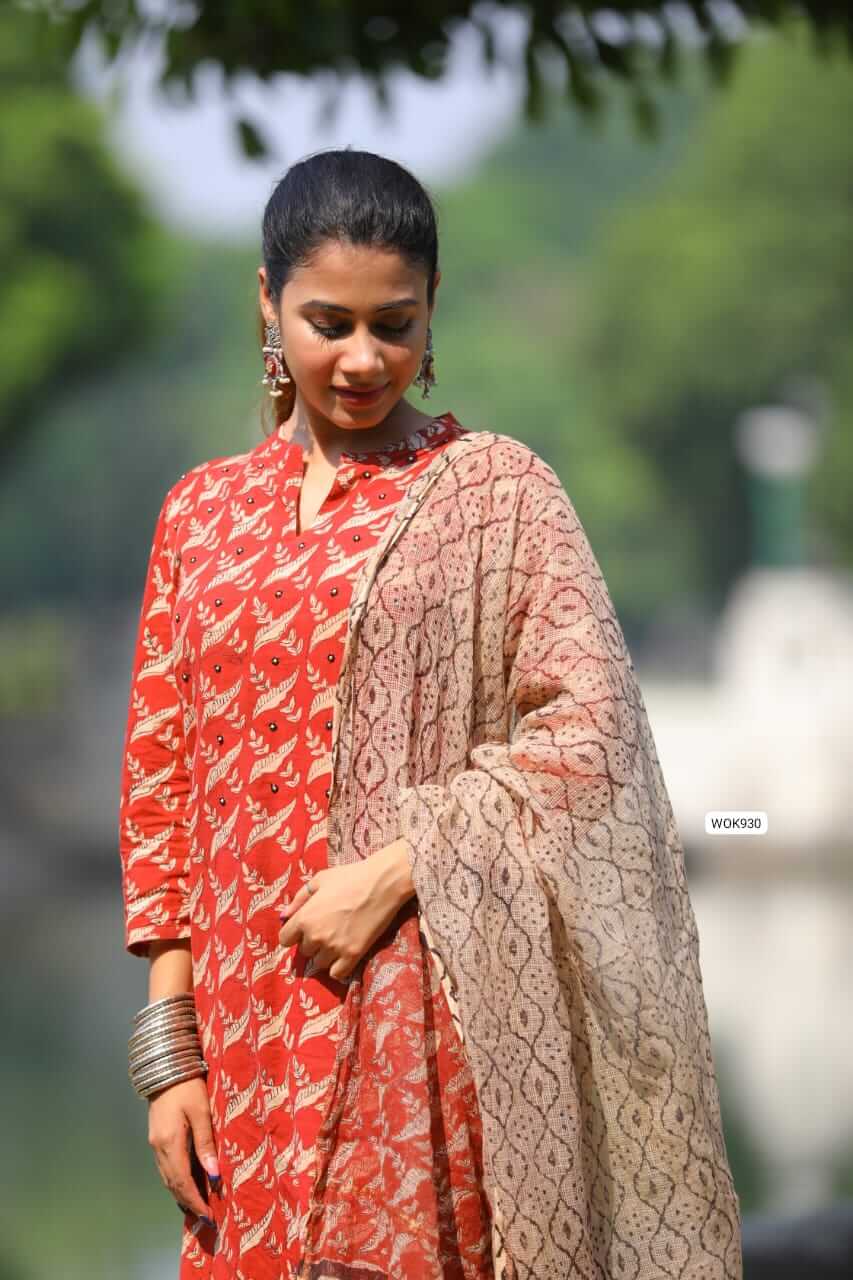 *gorgeous handblock kurta sets with doriya handblock dupatta by your side in amazing combination of the red beidge and black