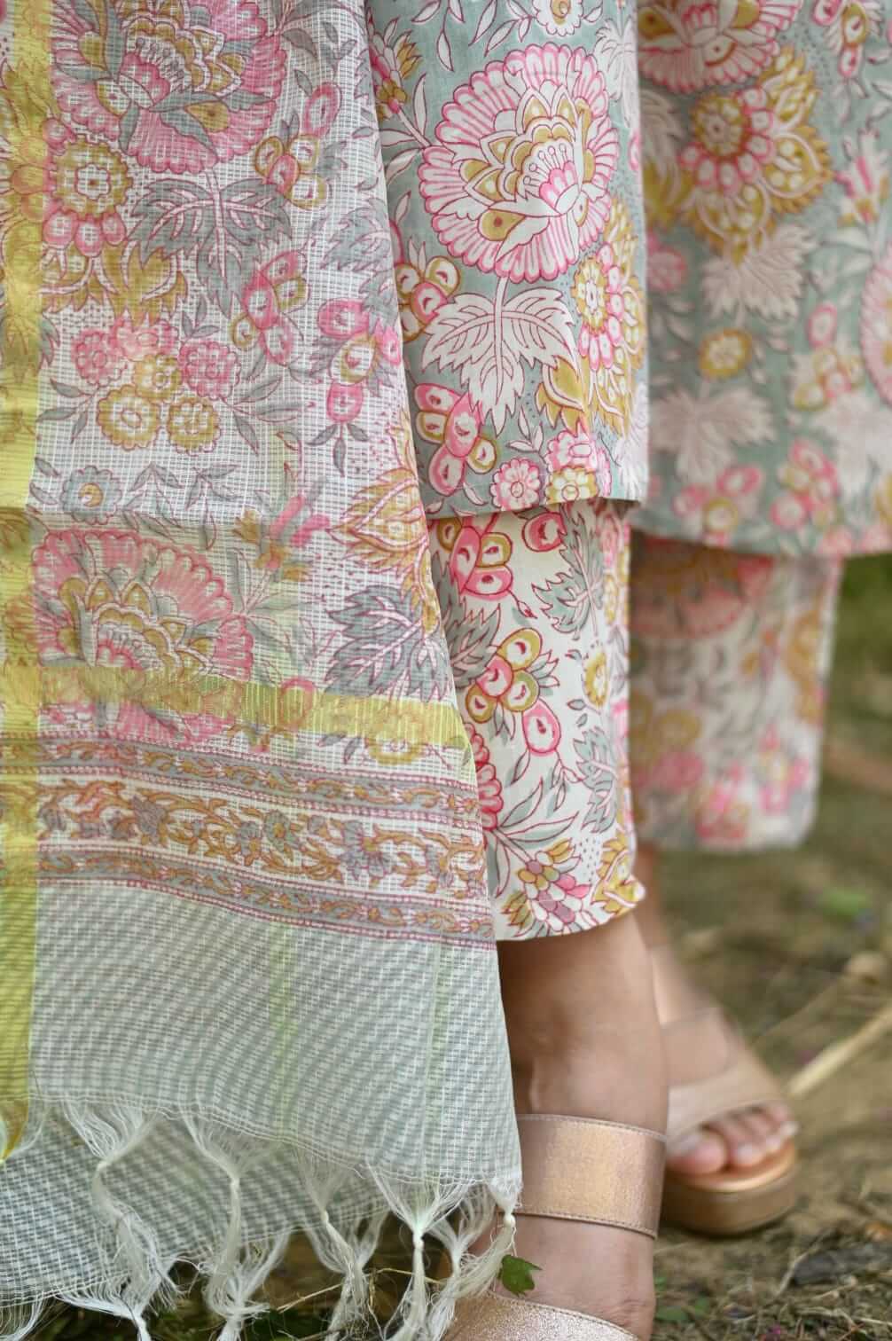 Classy colour combination of grey and pink in handblock pure cotton...
