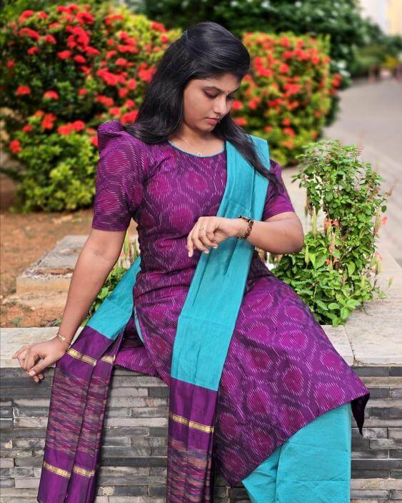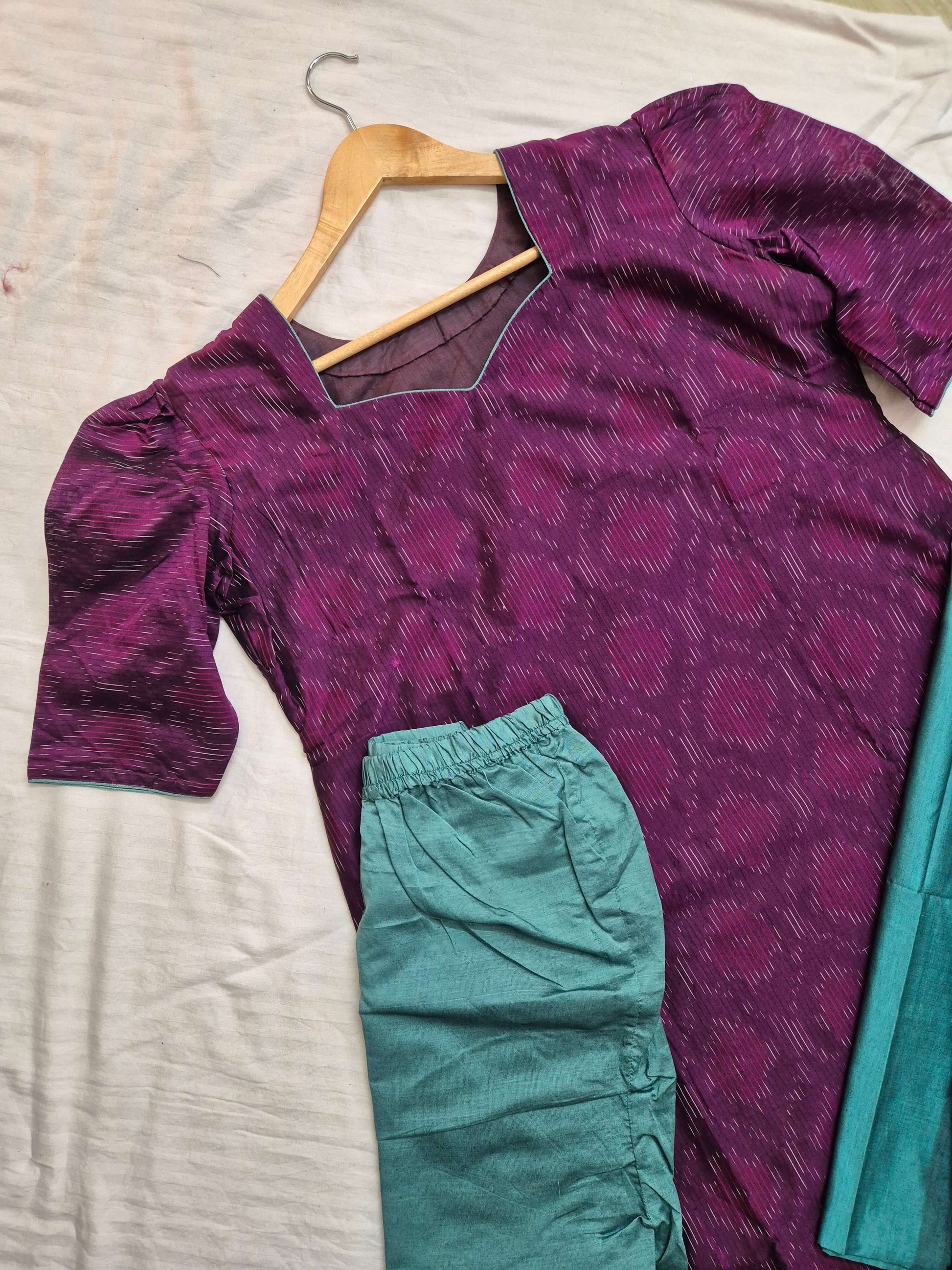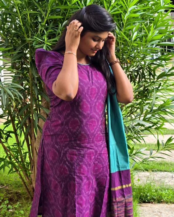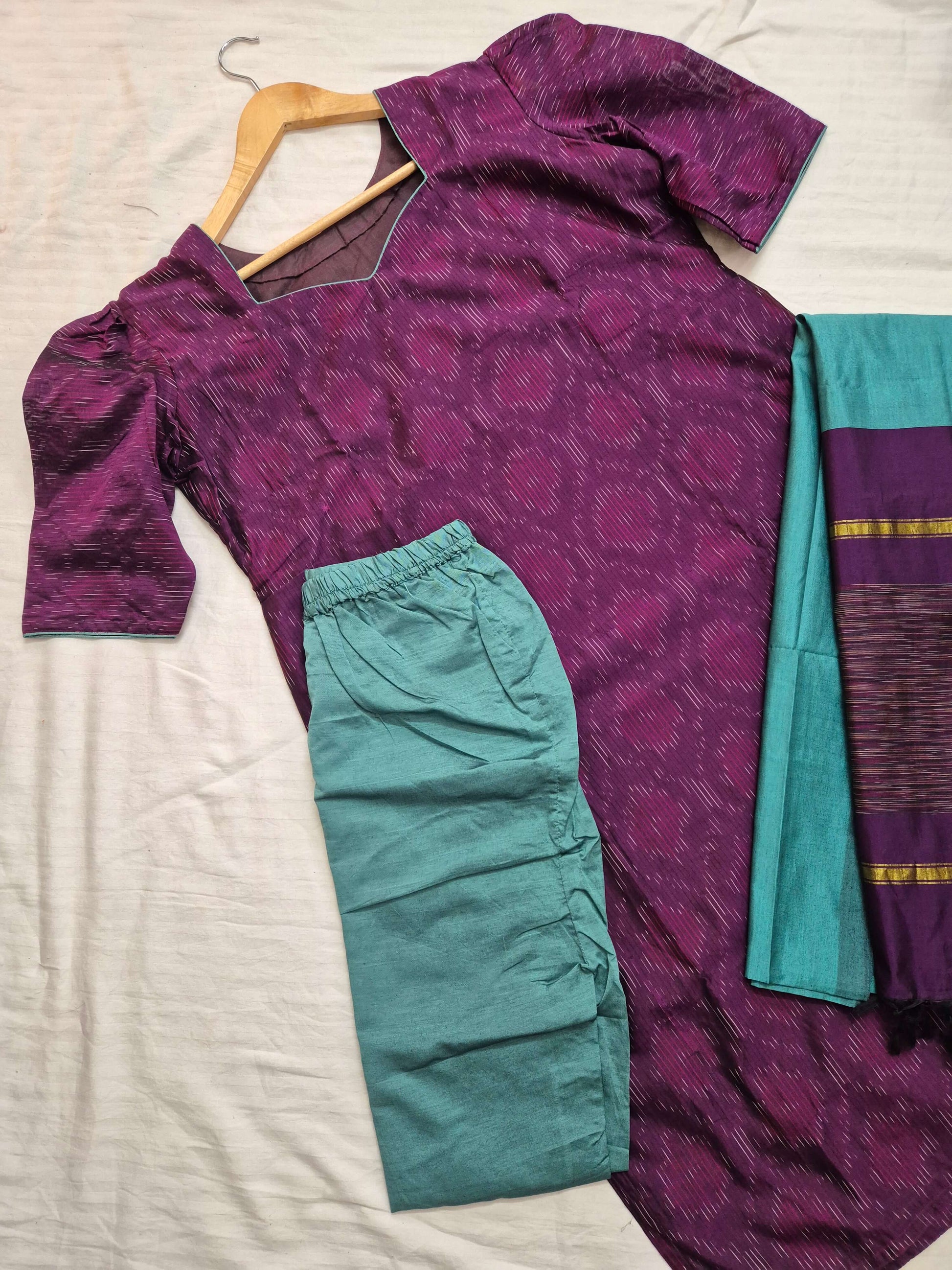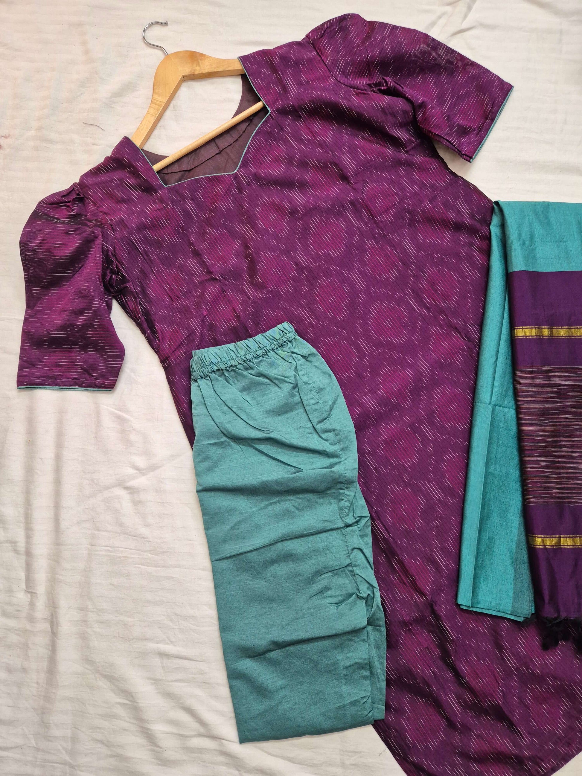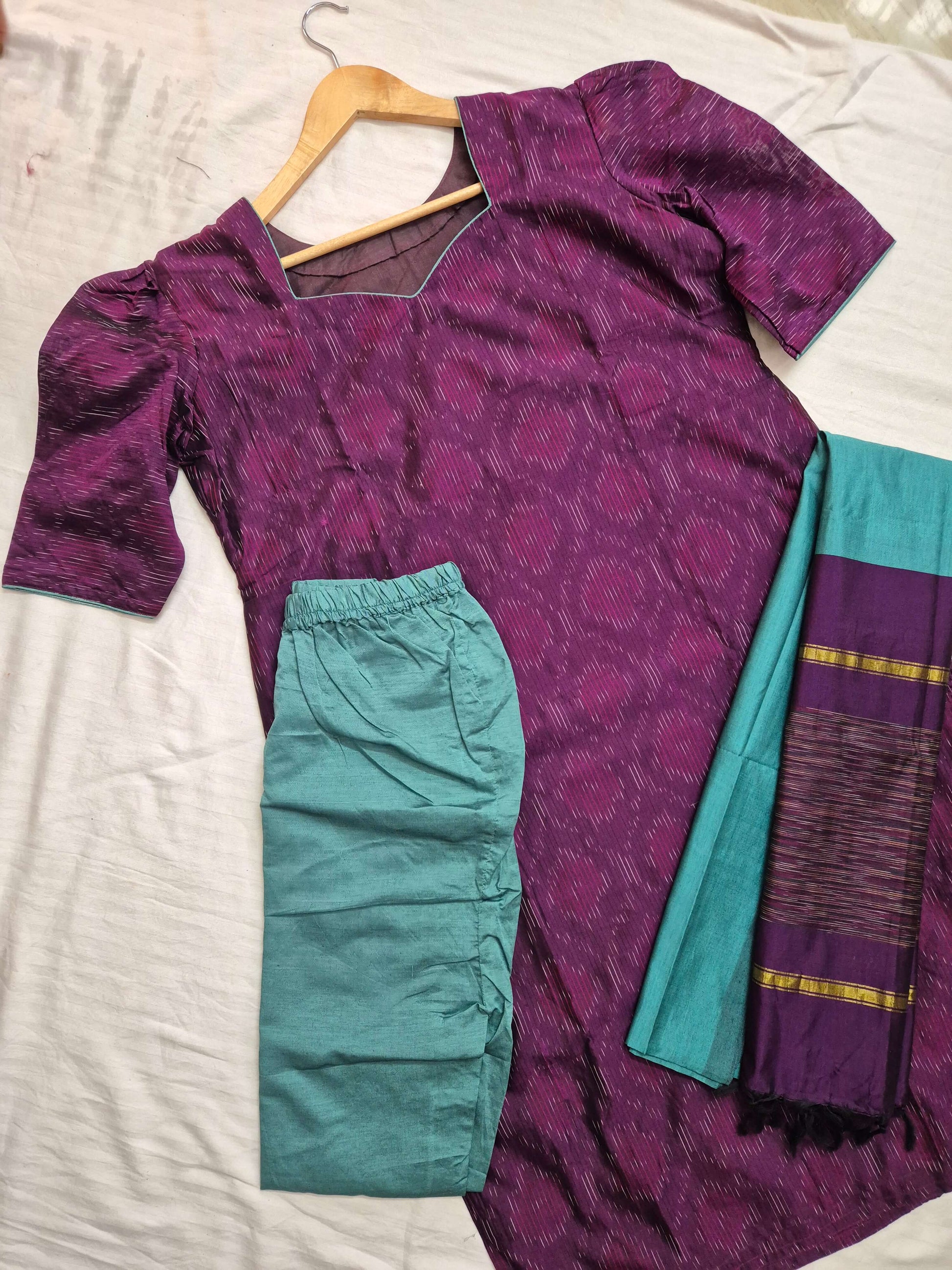 Pochamplly Silk Ikkat top Pure Handloom Dress with lining