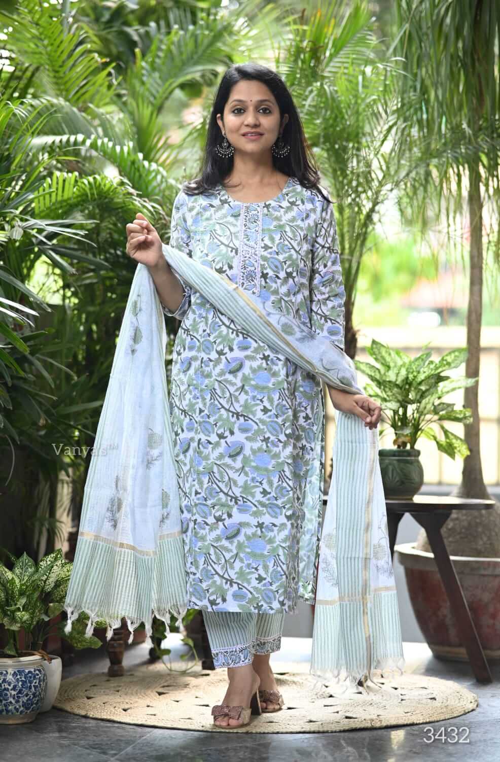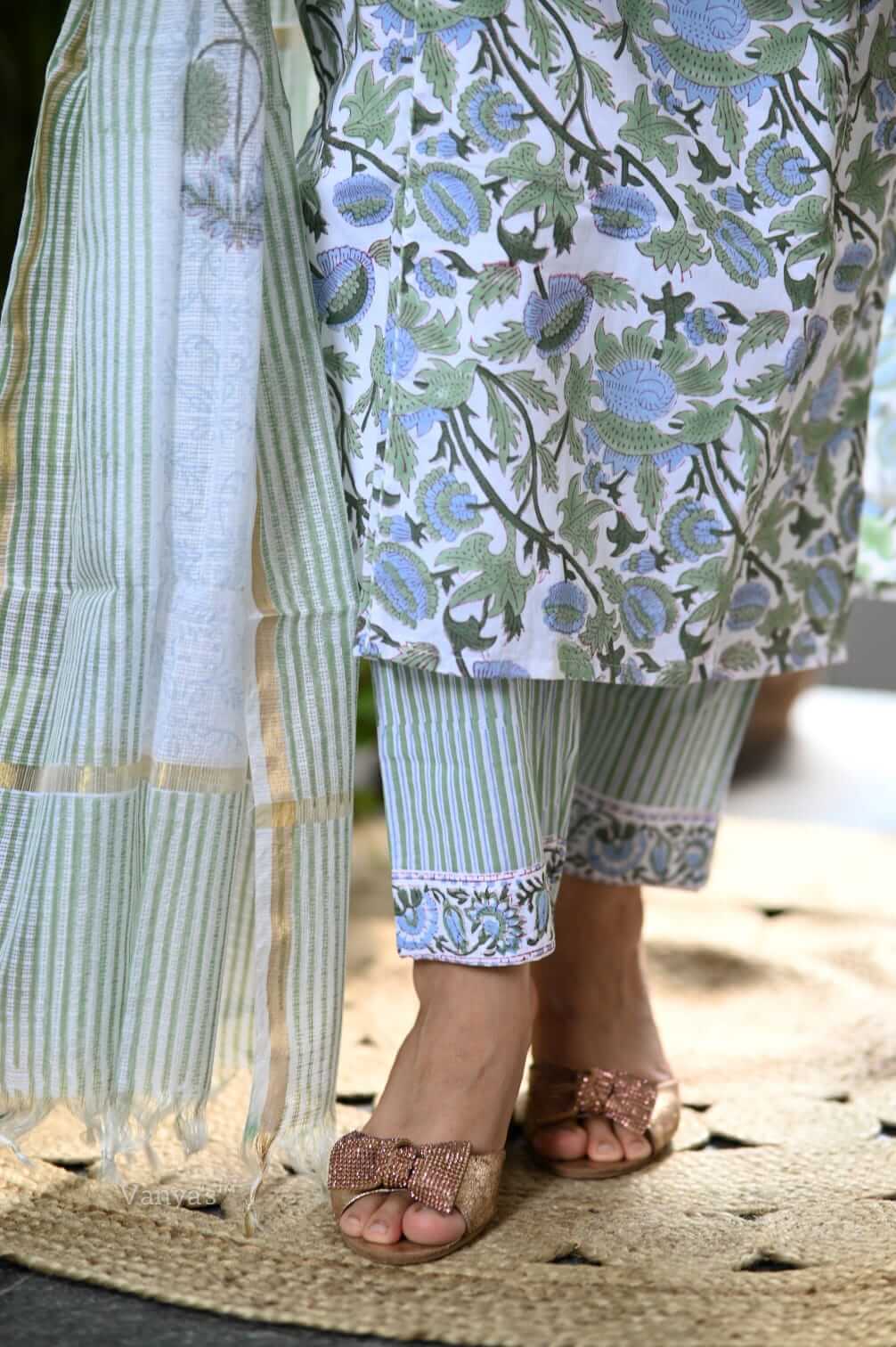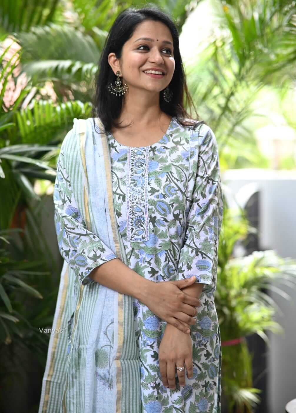 *Hand block jaal butta* cotton fabric with *LINING* attached inside .... beautifully crafted with lace....