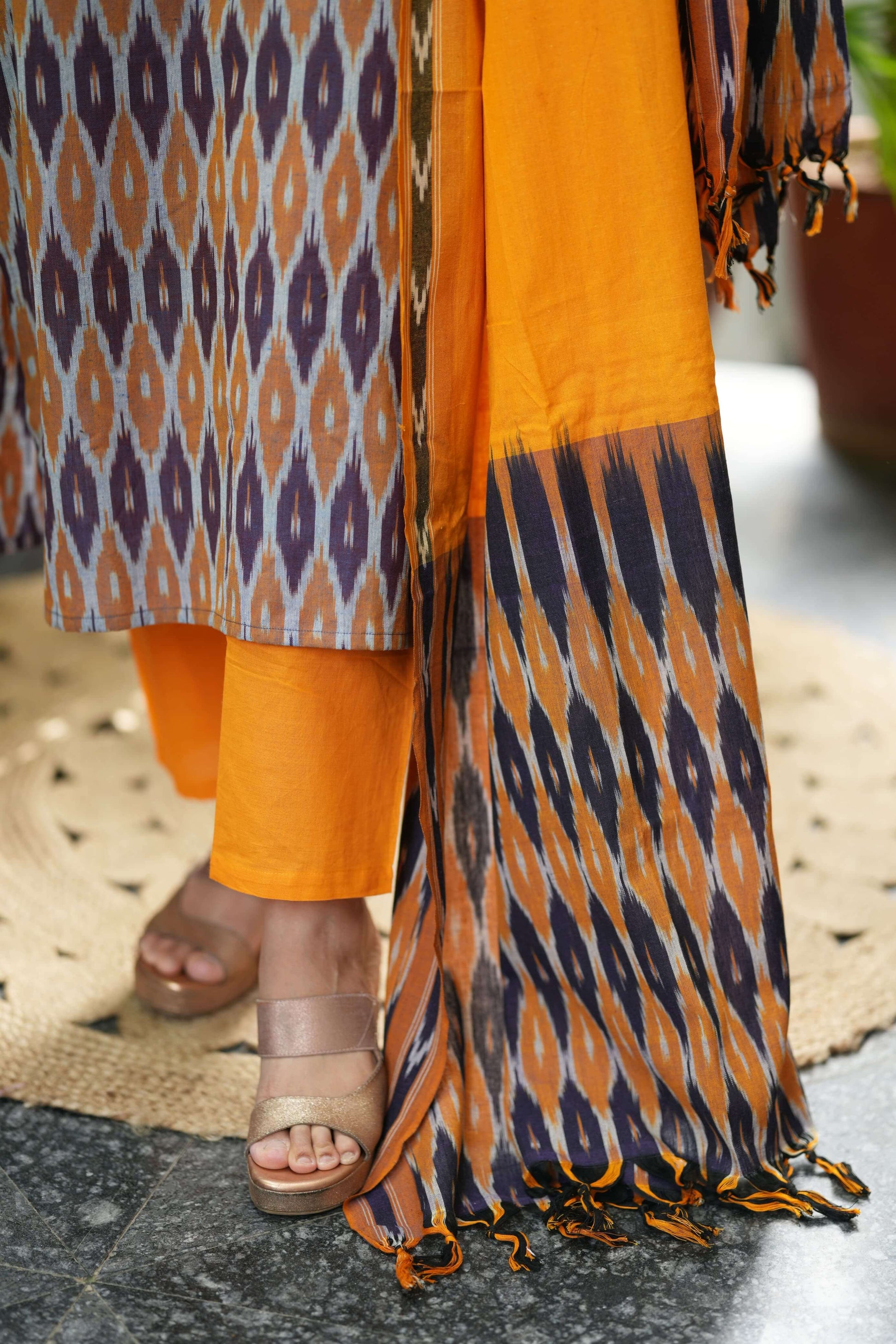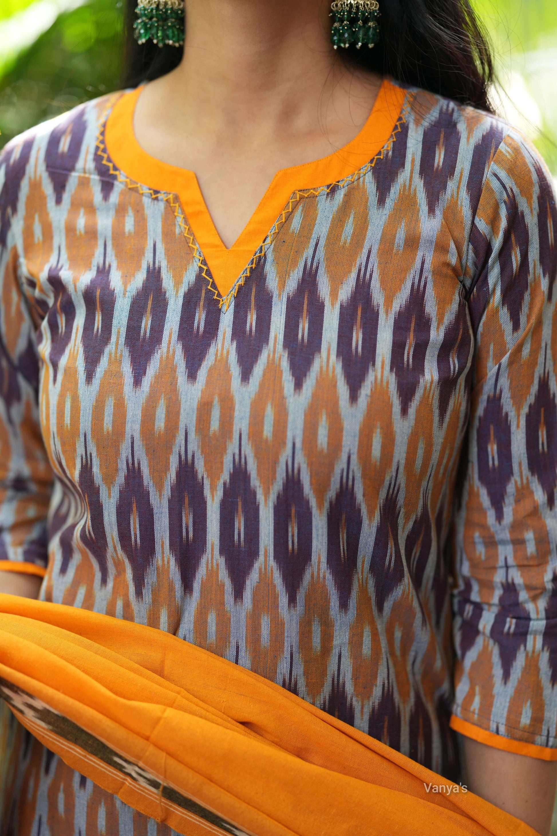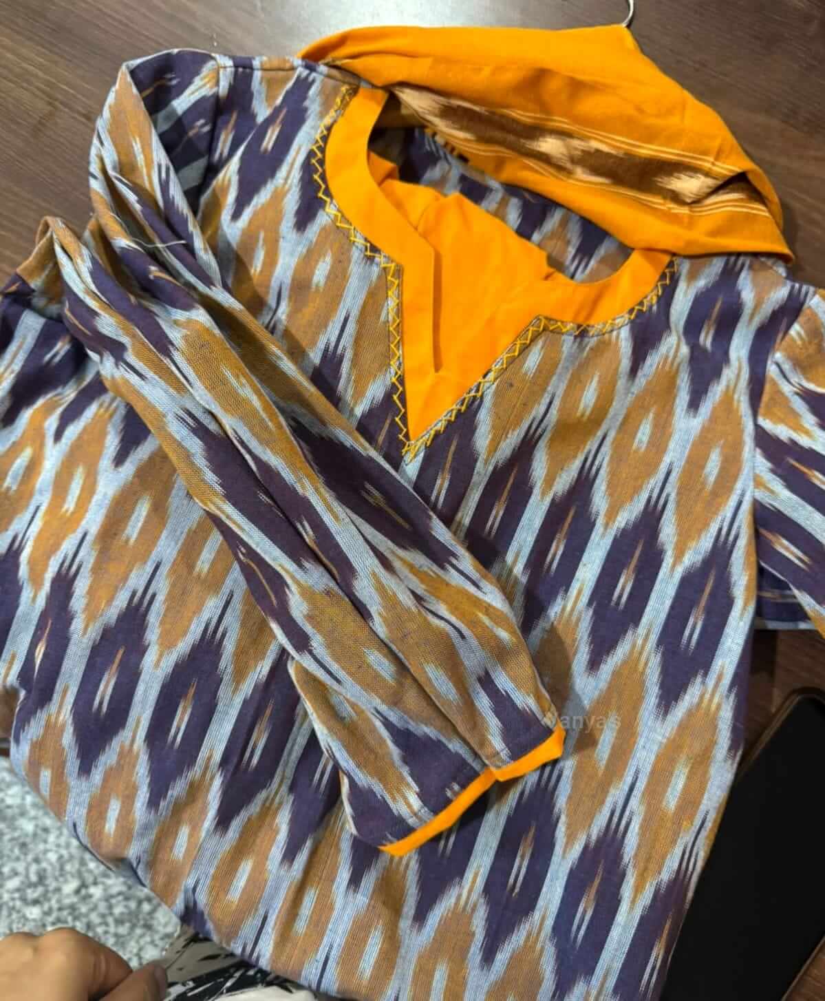 Pure south cotton ikkat weaving pochampally fabric outfit for your days. This handloom dress is so comfy.