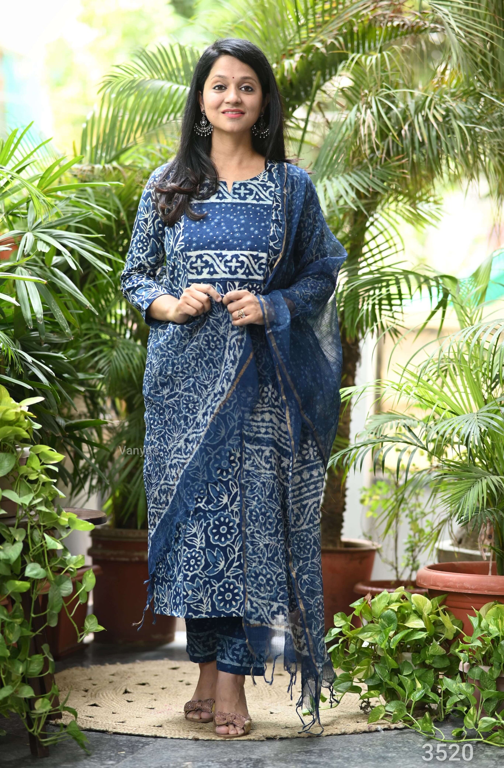 A captivating Bagru hand block printed suit set in deep indigo blue, crafted from soft cotton fabric, featuring traditional patterns for a timeless and elegant look.