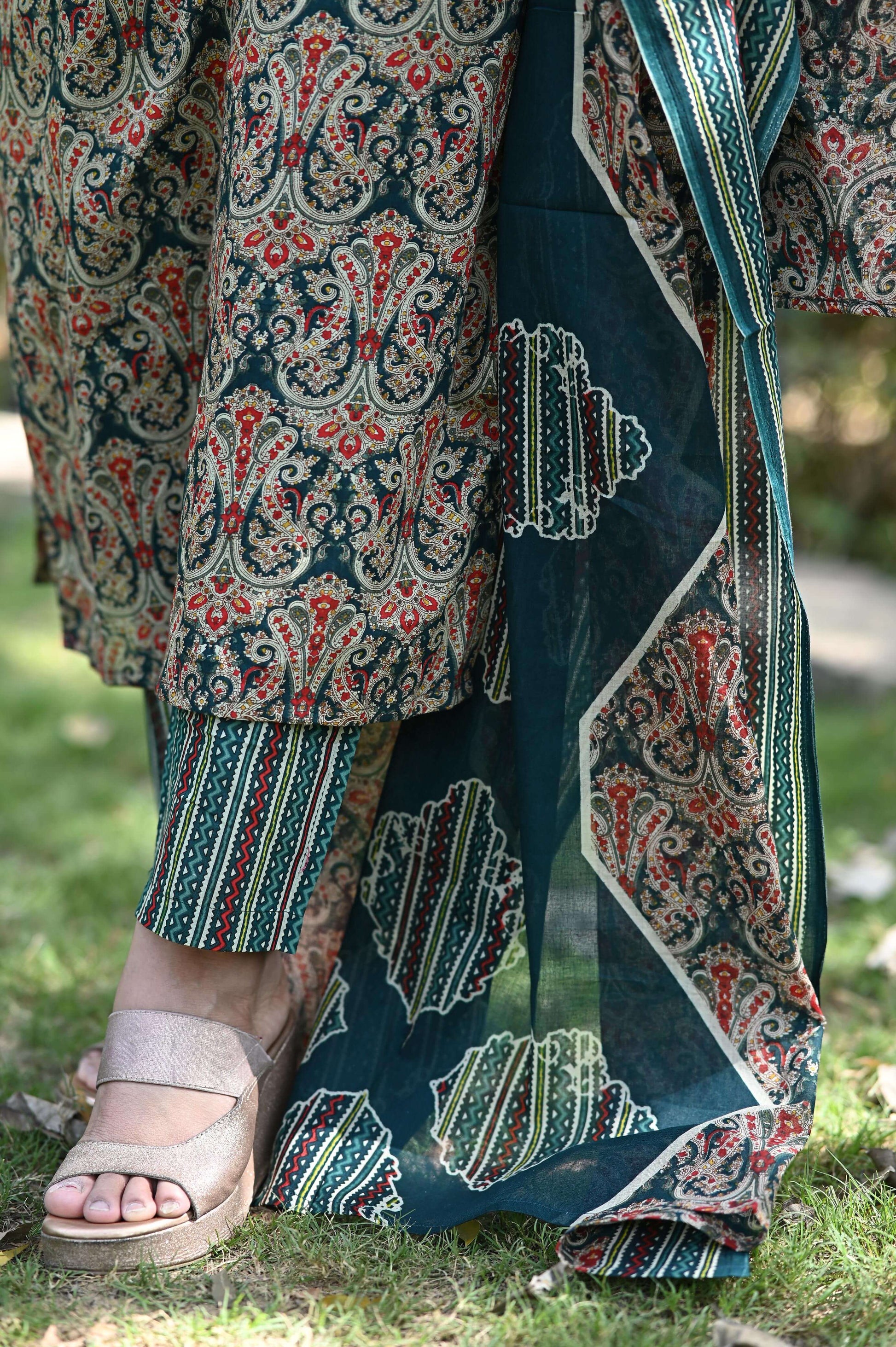 New print in kalamkari all you need for this summer. walk in this elegant and beautiful three piece suit.