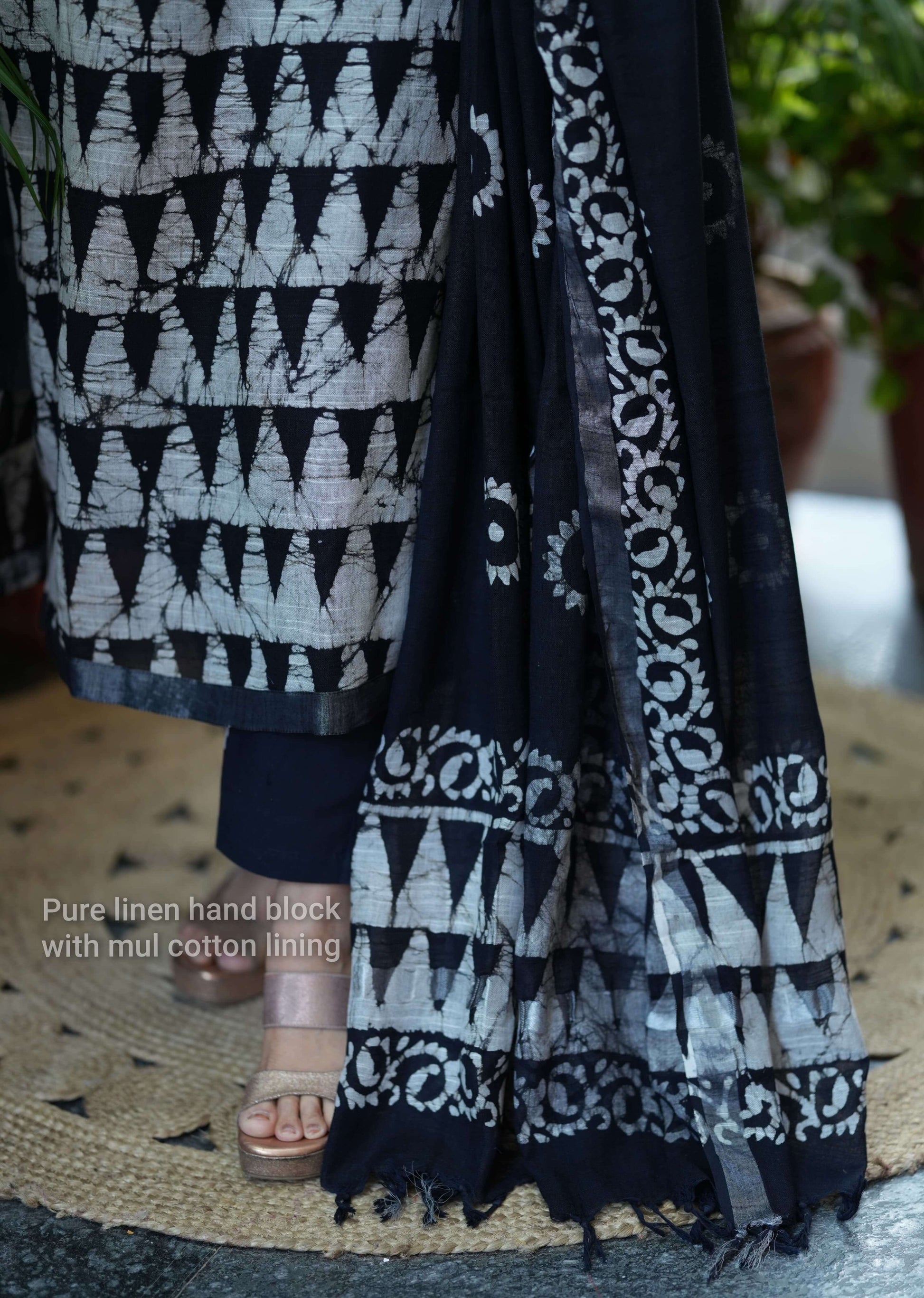 What better way to enjoy your days in our pure linen hand block cotton suit *(with mul mul cotton lining)* and pure linen duppata set which gives a classy look.