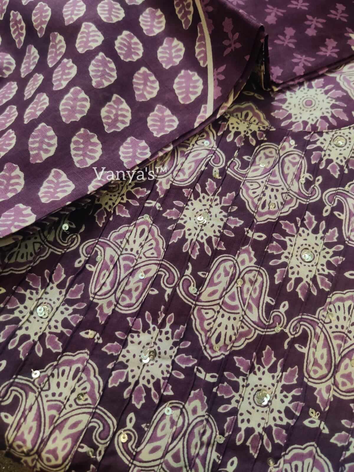 Explore this pure printed cotton suit , enclosed with pintux and hand sequence work. Pure Cotton kurta with cotton pant, Paired with cotton mul duppata.