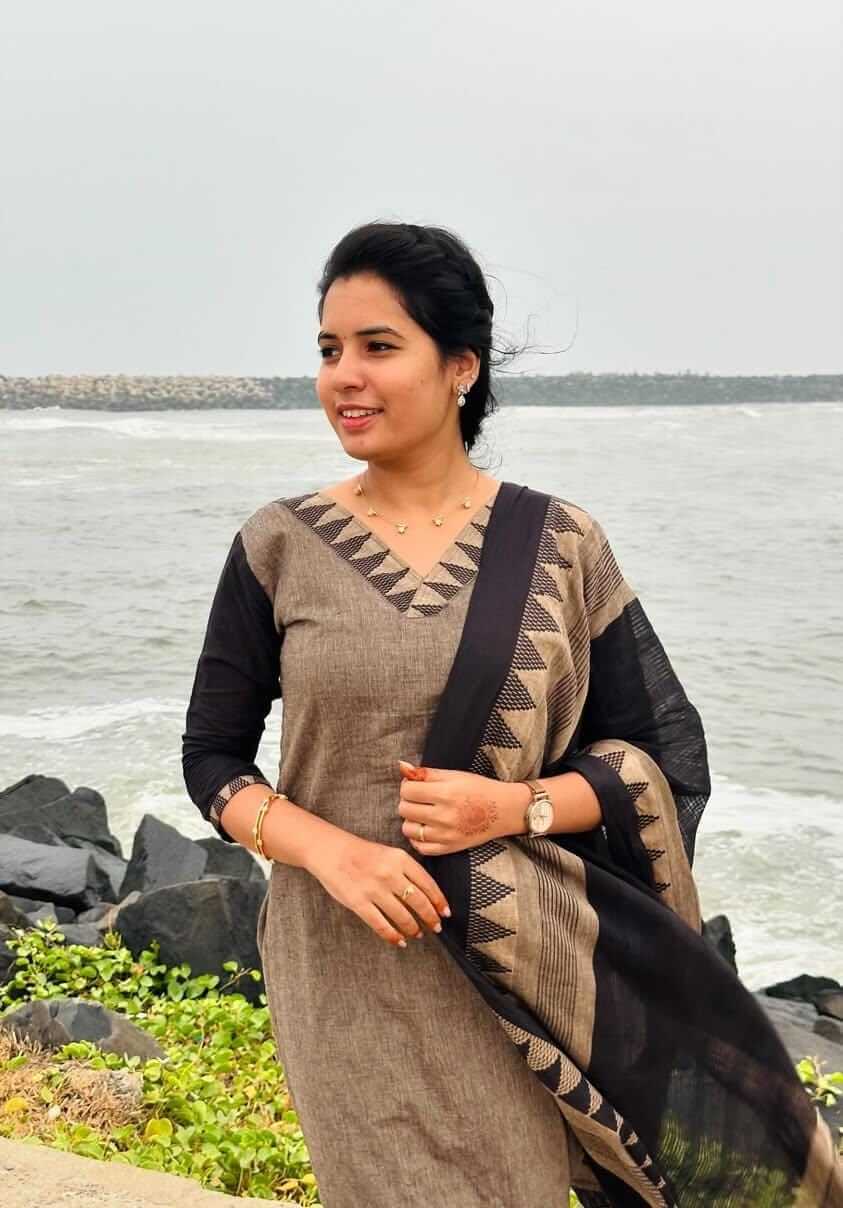 Pure South Cotton Handloom Border Kurta with Elegant Neck Detailing and Perfect Cotton Pant.