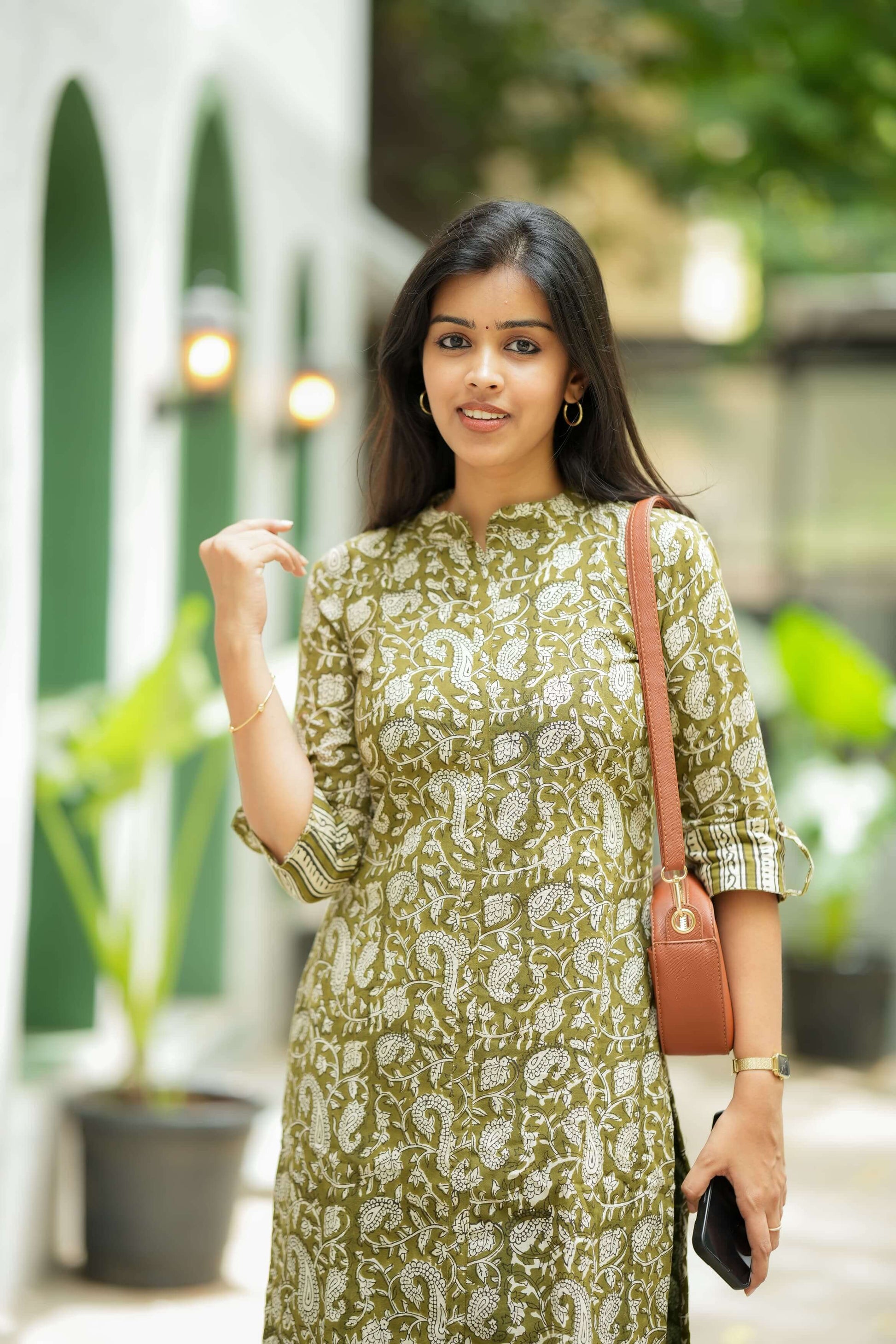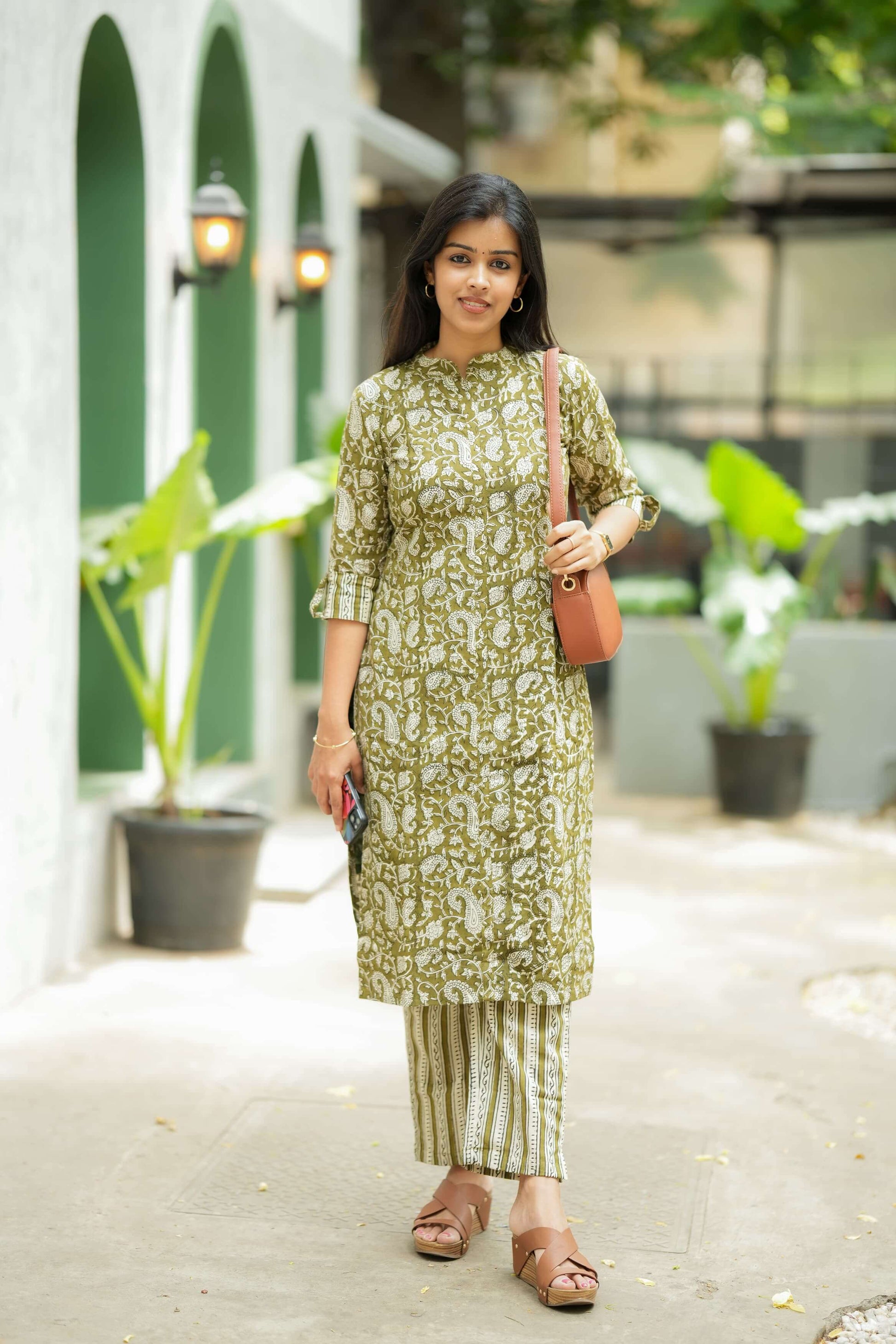 This elegant olive green co-ord set is crafted from pure Jaipur cotton – known for its breathable and soft texture.