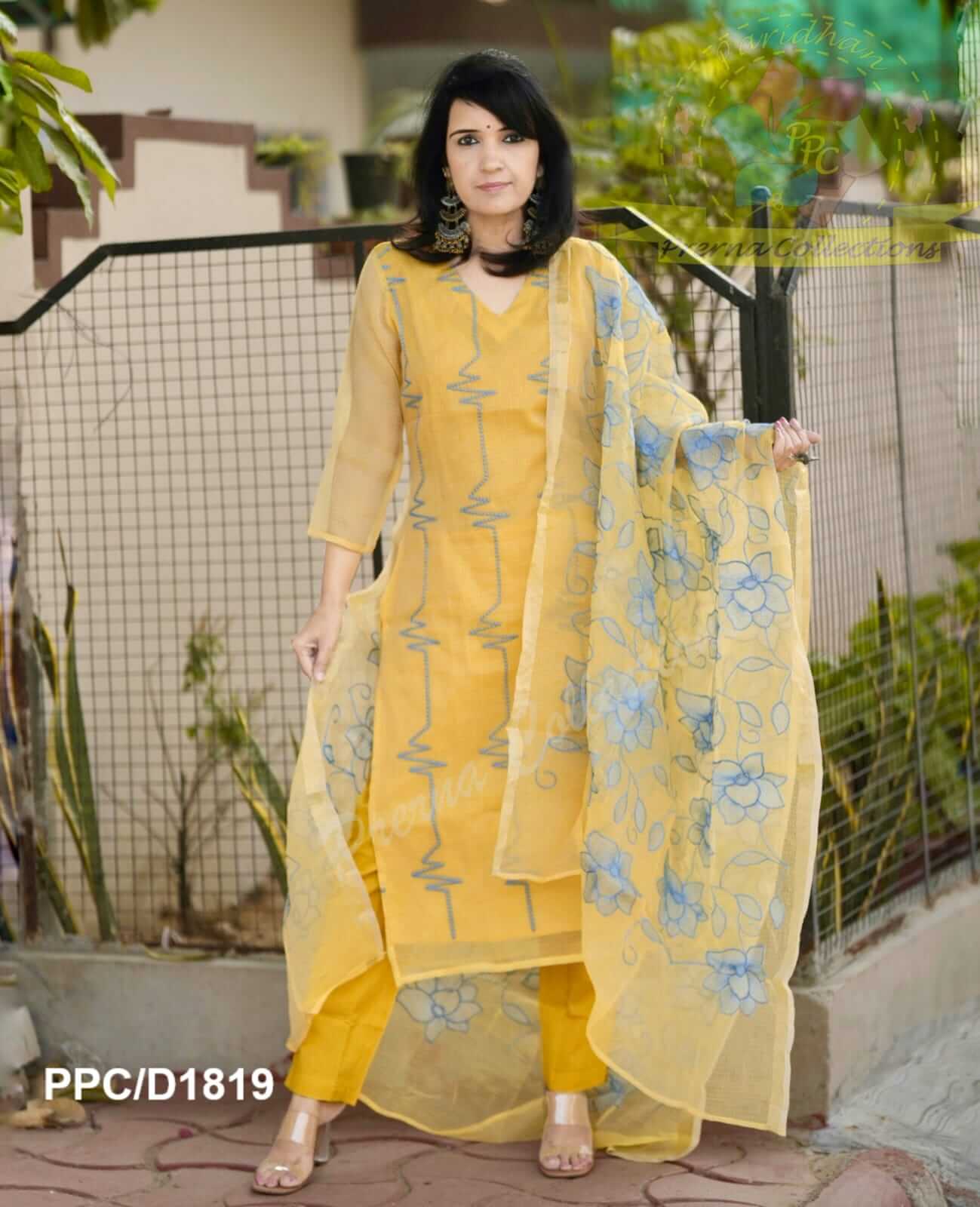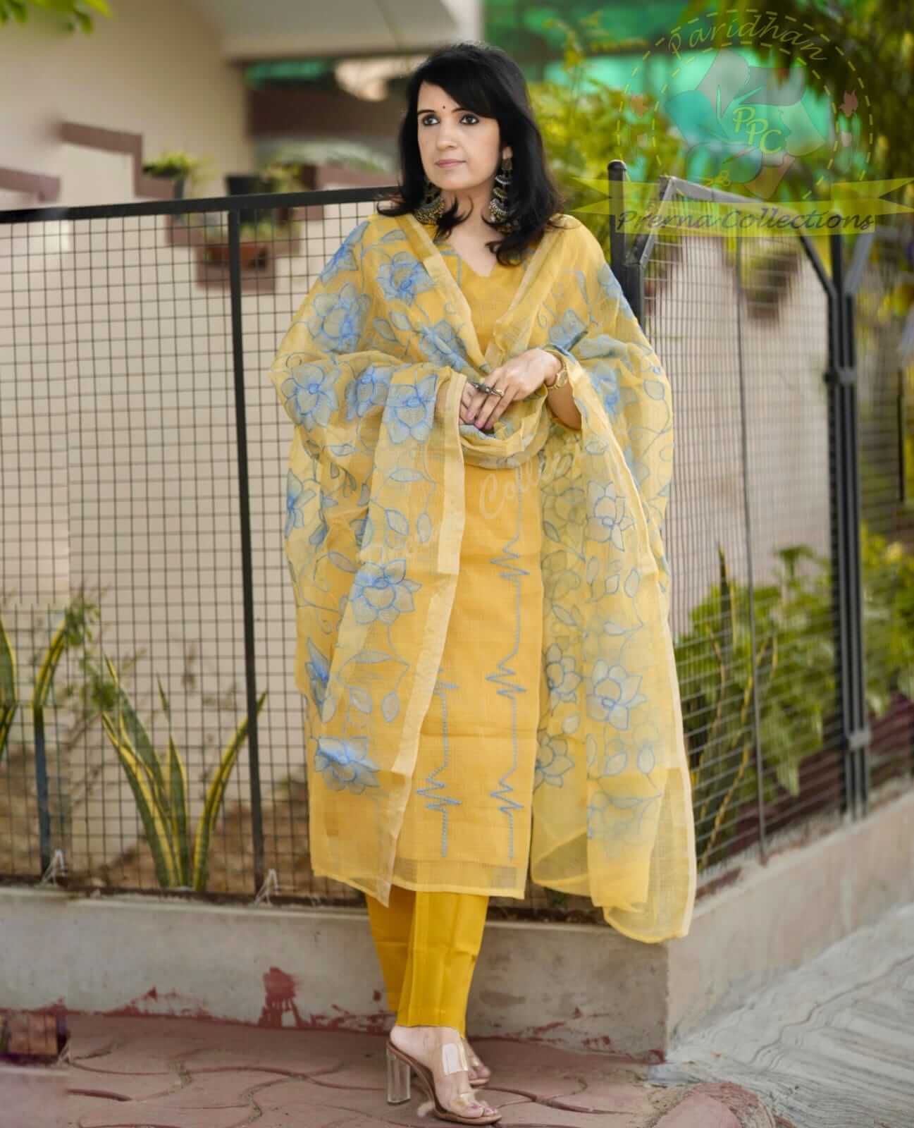 *CLASSY SUIT FOR HANDLOOM LOVERS DIGITAL PRINT HANDLOOM COTTON SILK WITH GICHHA SILK PANT AND CLASSY COTTON SILK DUPATTA IS SURELY A STUNNER FOR EVERY OCCASIONS*
