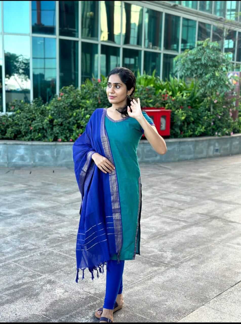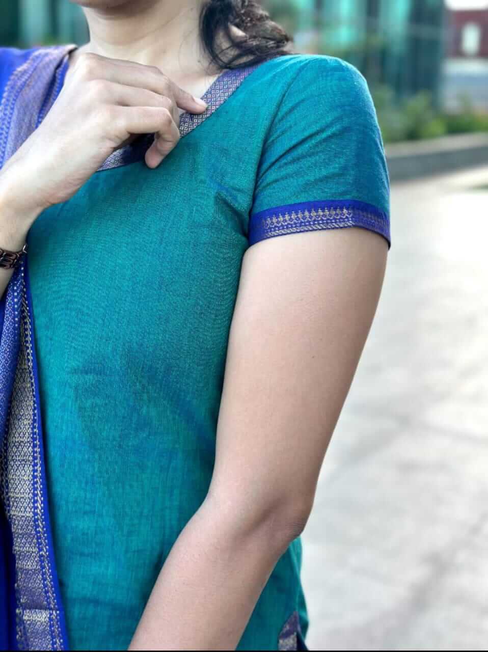 Pure South Cotton Handloom Border Kurta with Elegant Neck Detailing and Perfect Cotton Pant.