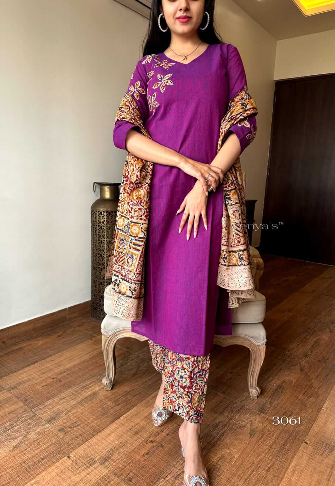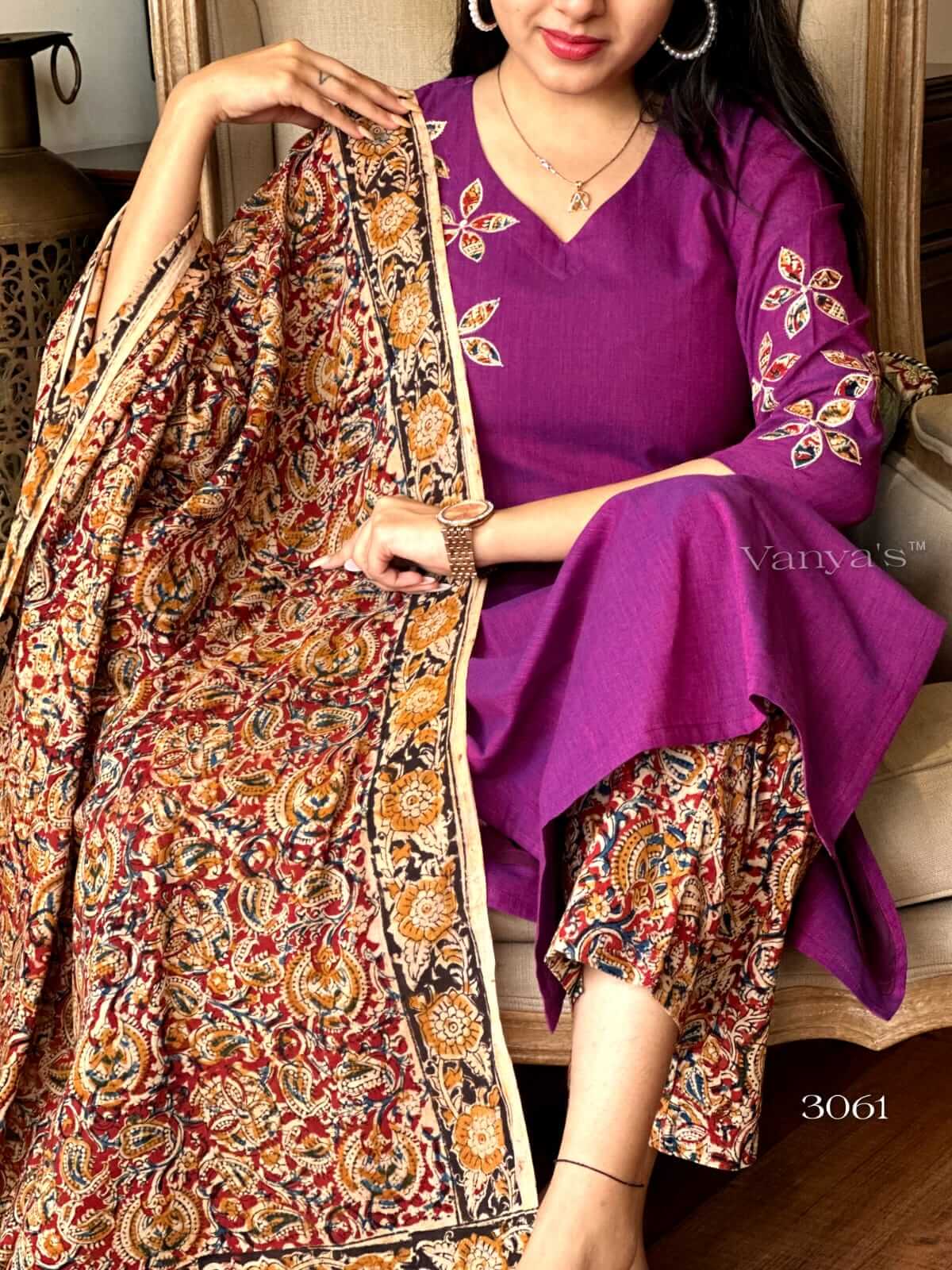 Pure handloom south cotton hand printed chitrkari duppata and pant*