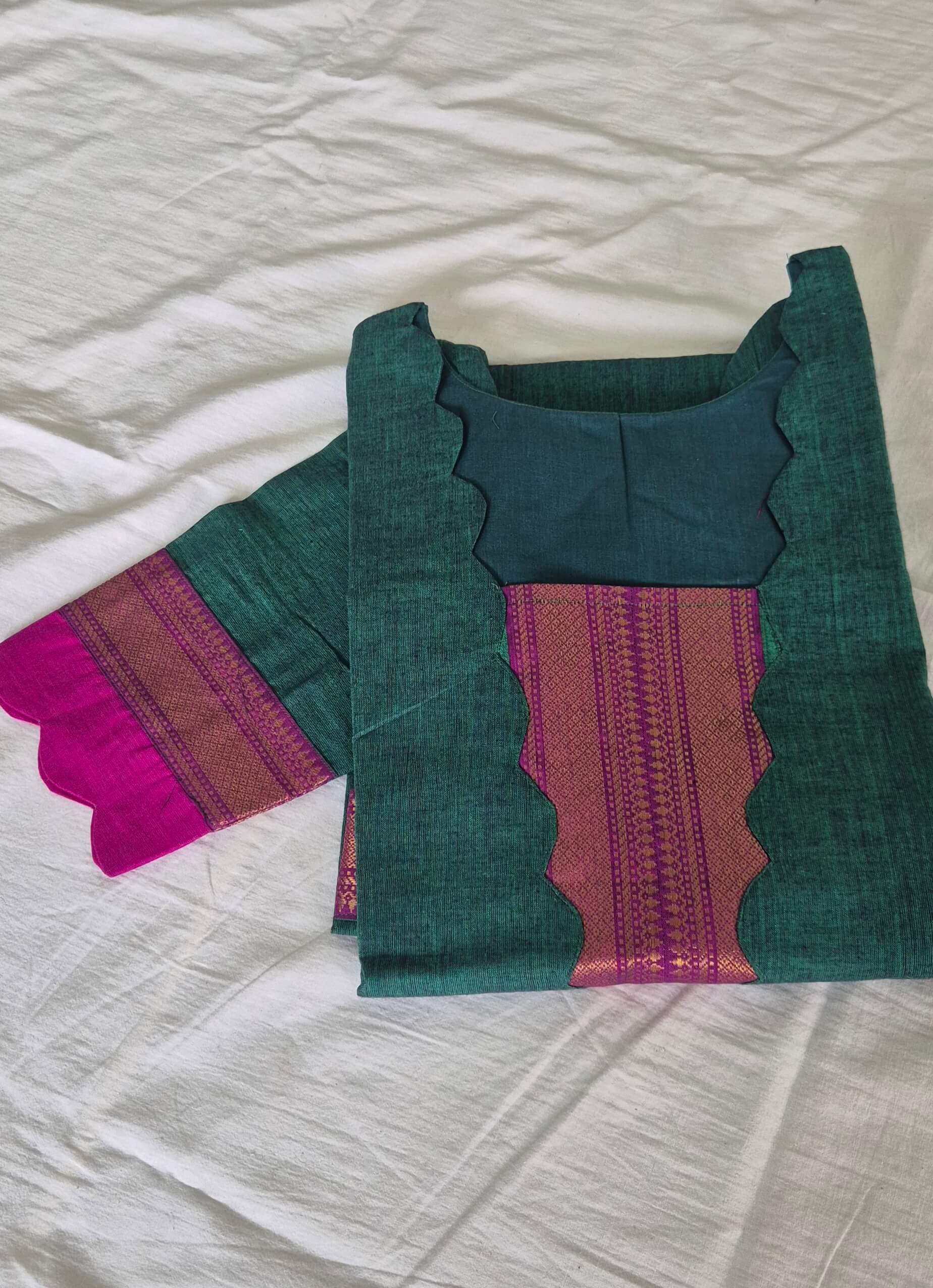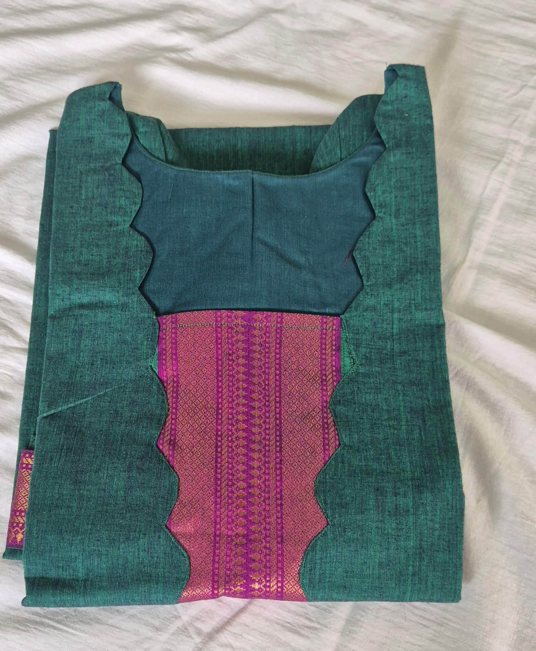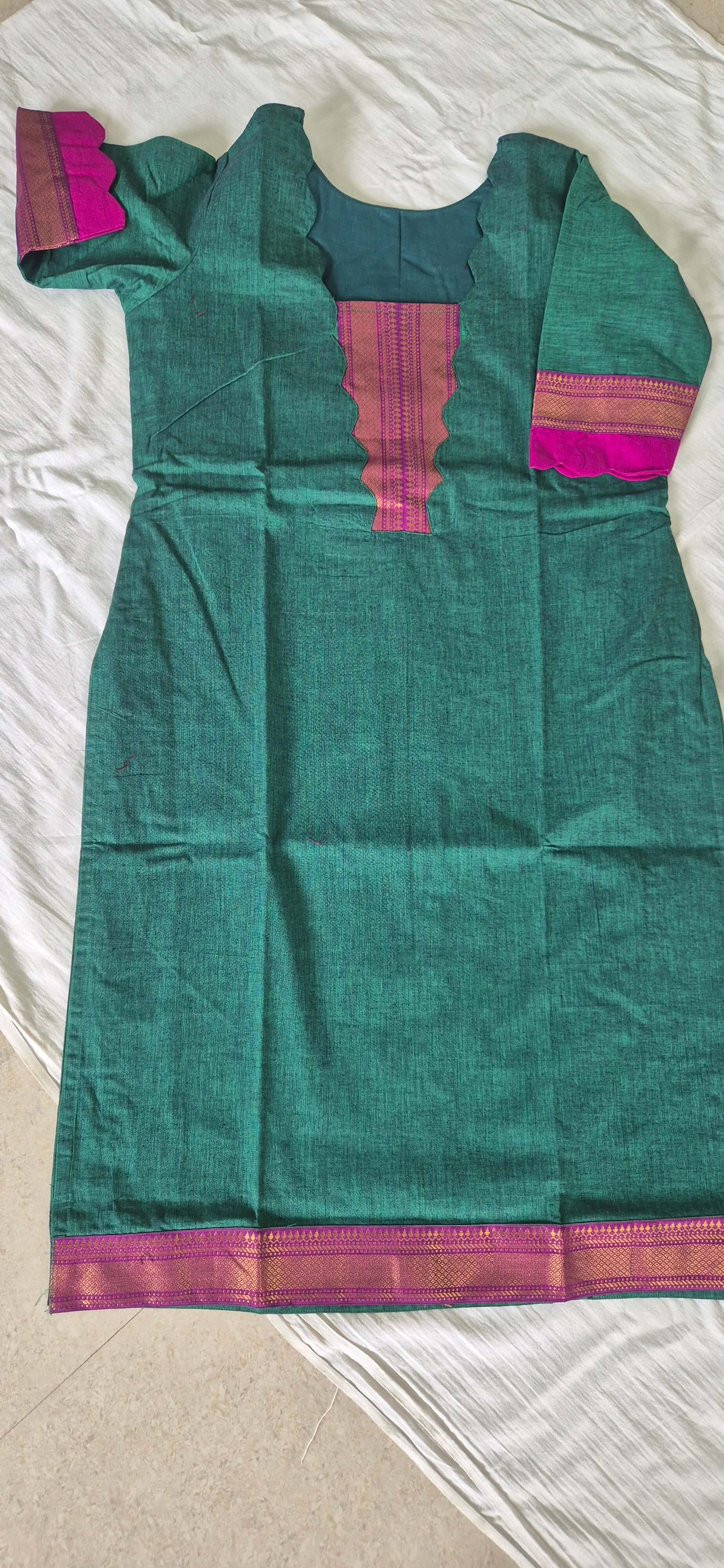 Pure South Cotton Handloom Border Kurta with Elegant Neck Detailing and Perfect Cotton Pant.