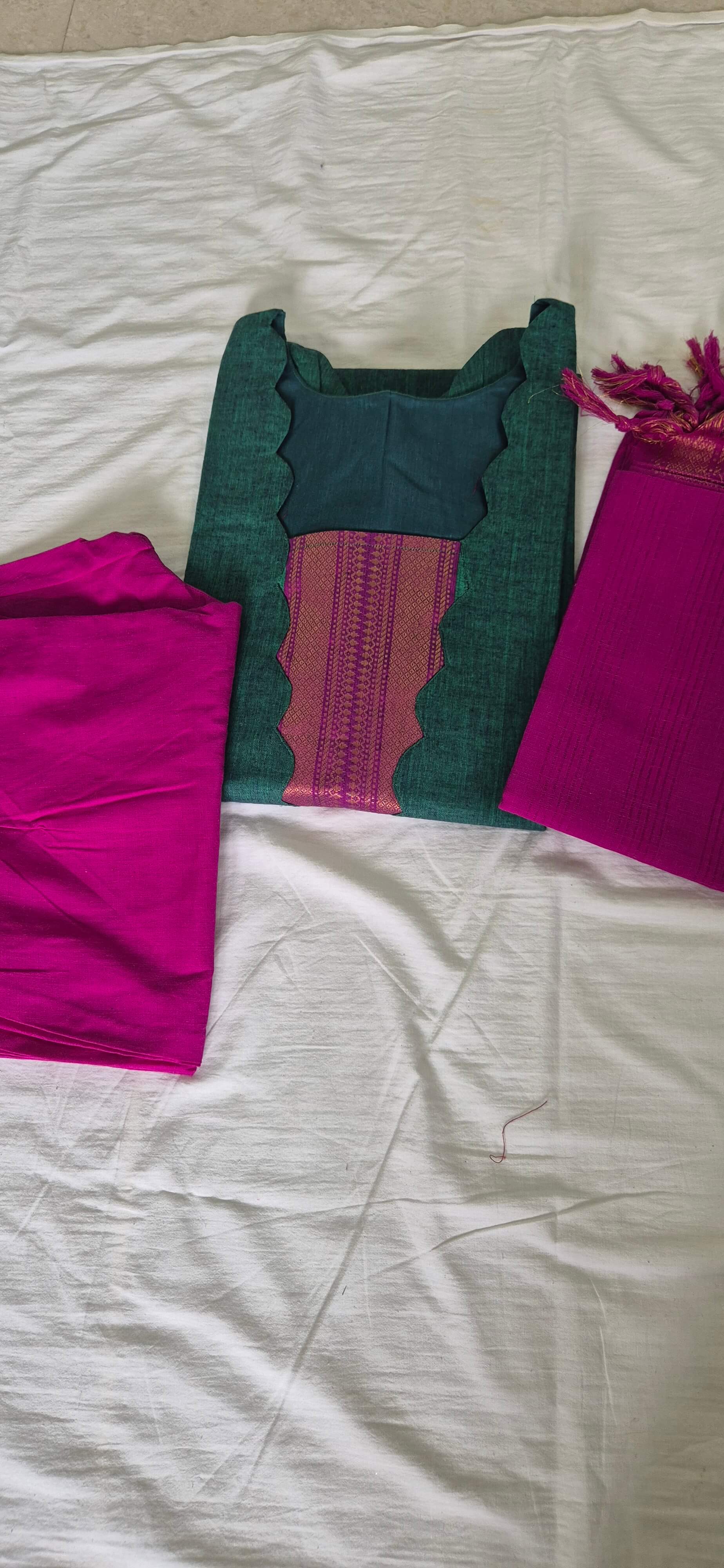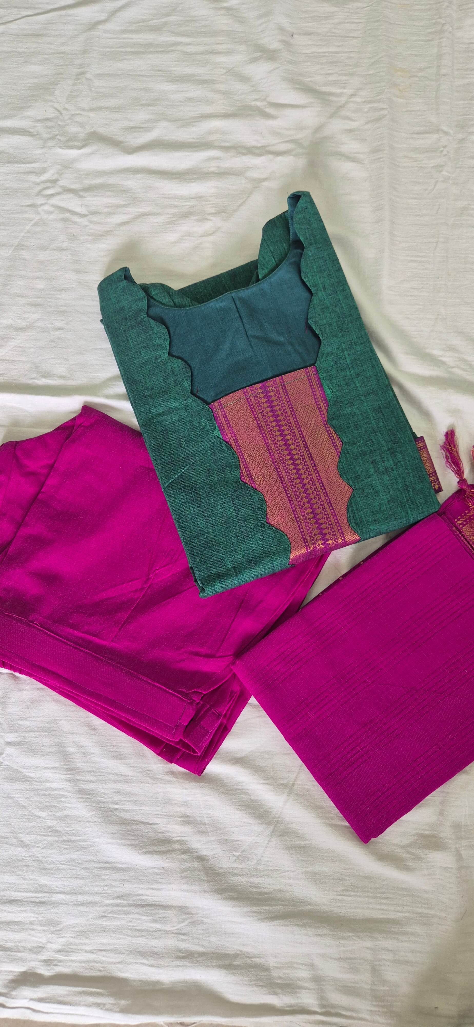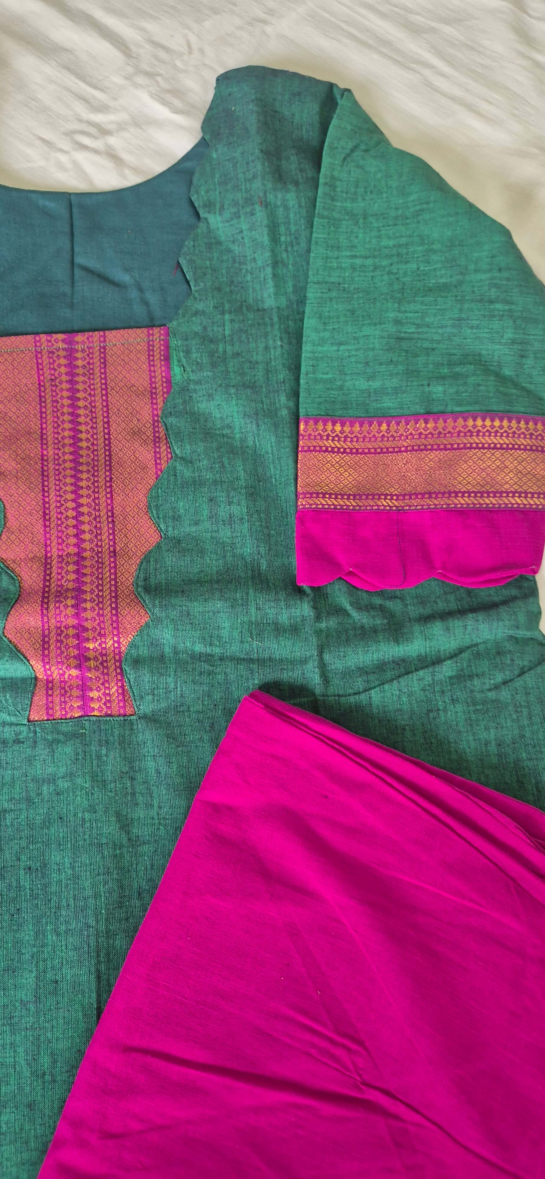 Pure South Cotton Handloom Border Kurta with Elegant Neck Detailing and Perfect Cotton Pant.