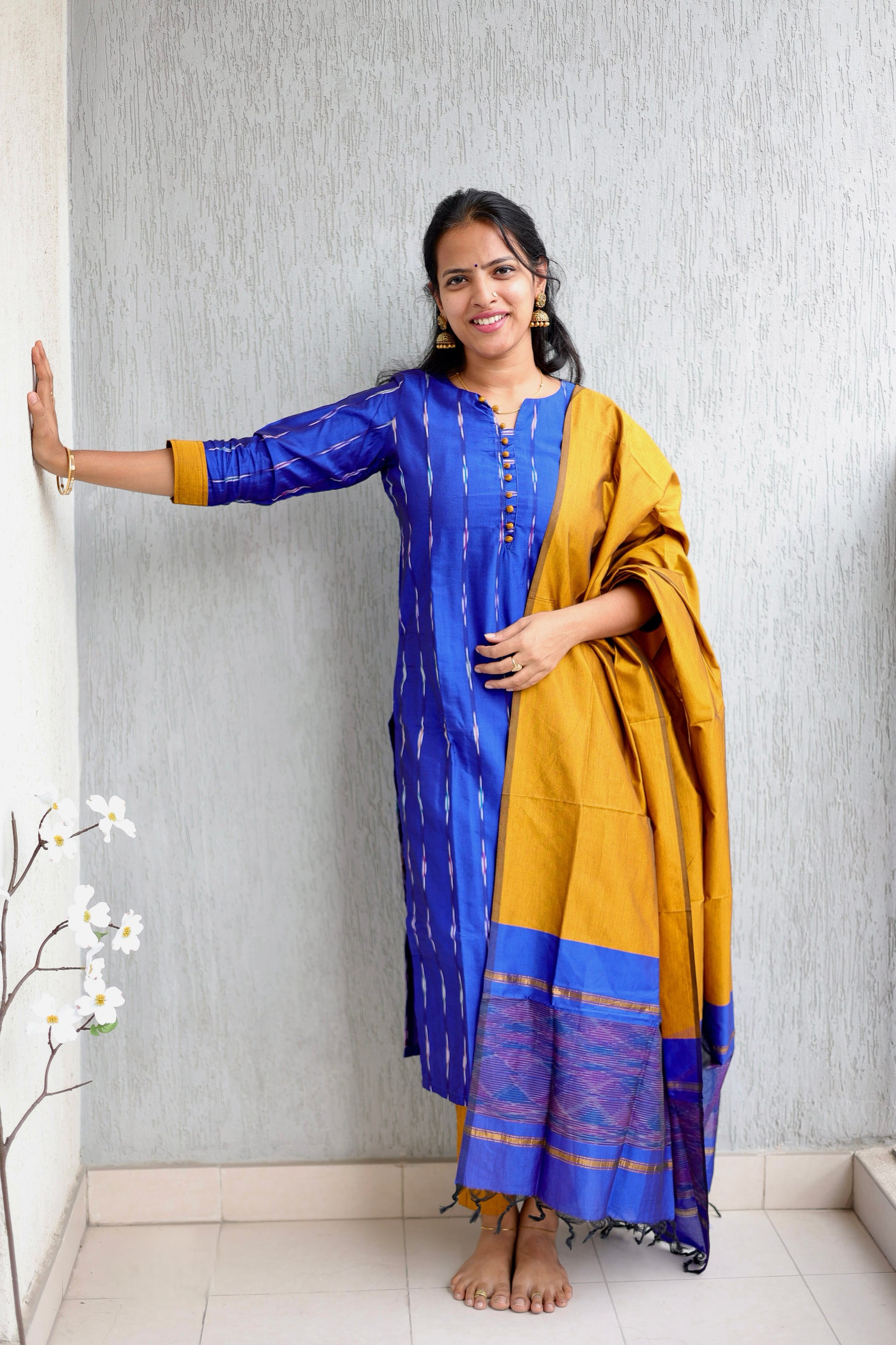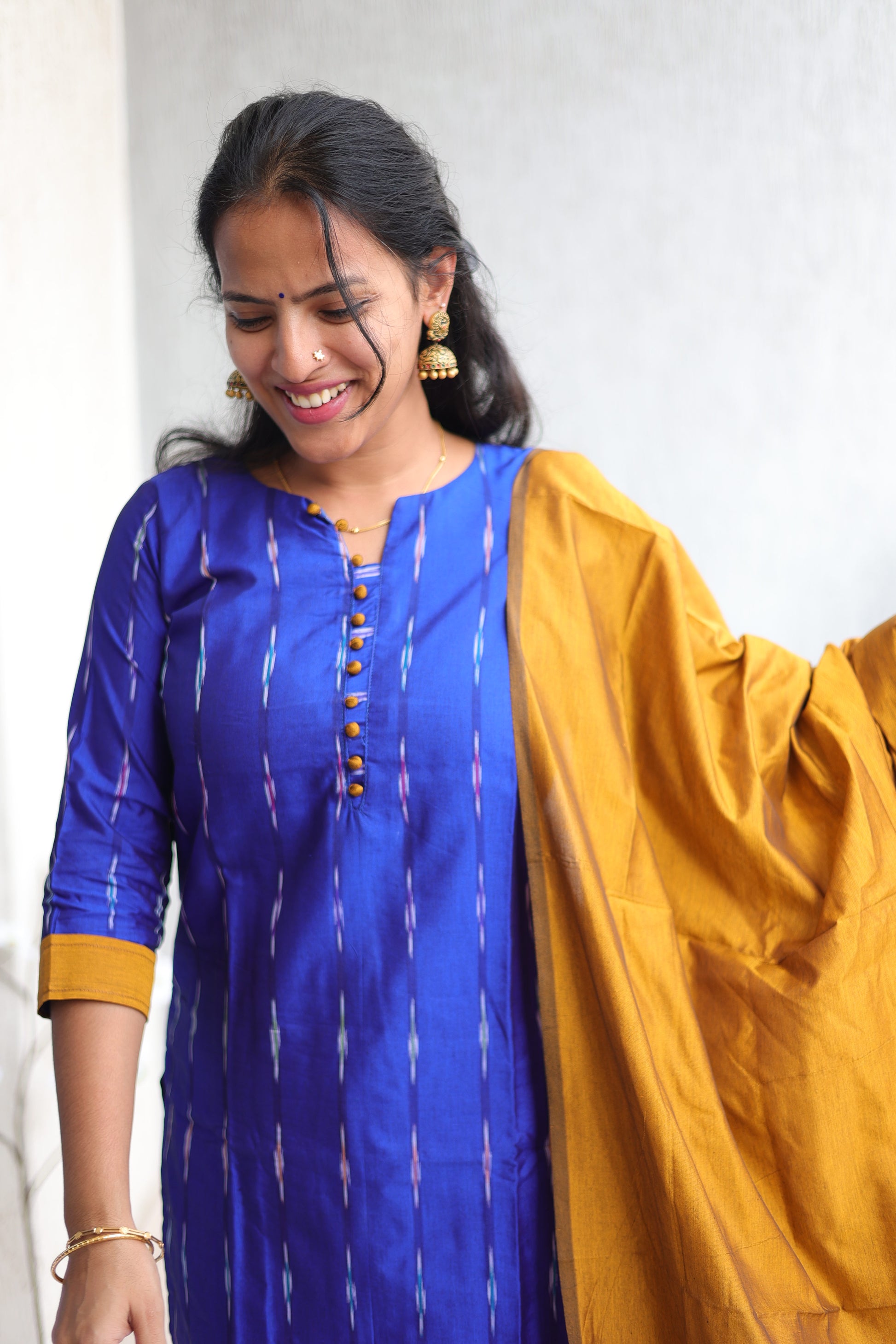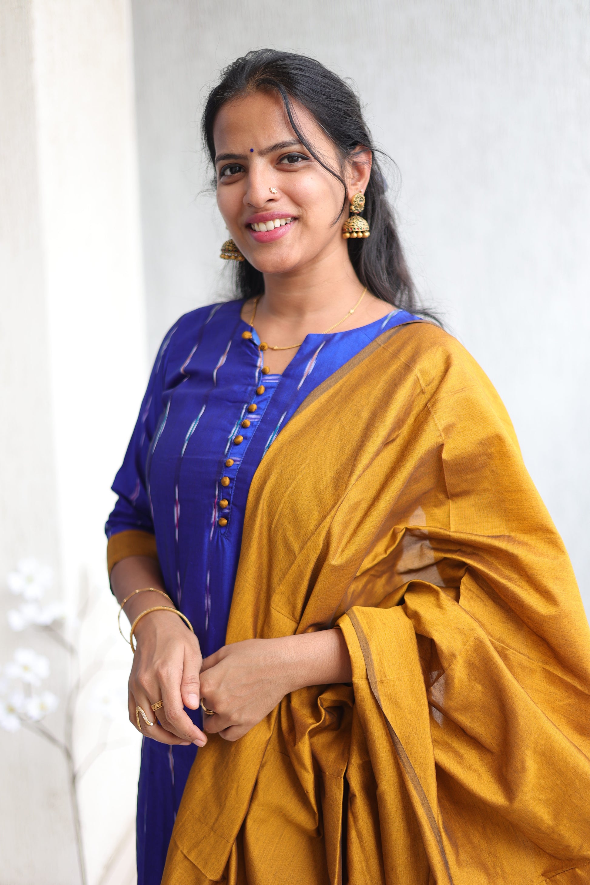 Semi silk Ikkat print in contrast shade of rustic , A comfortable wear with perfect fit makes it’s an ideal wear for any occasion.