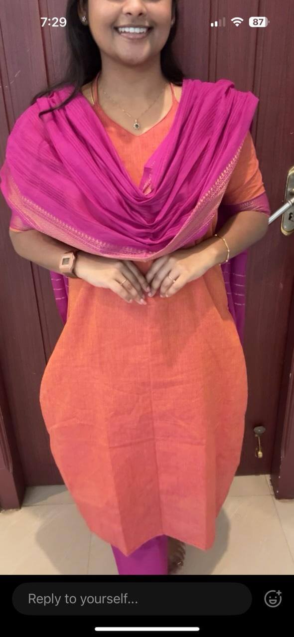 Pure South Cotton Handloom Border Kurta with Elegant Neck Detailing and Perfect Cotton Pant.