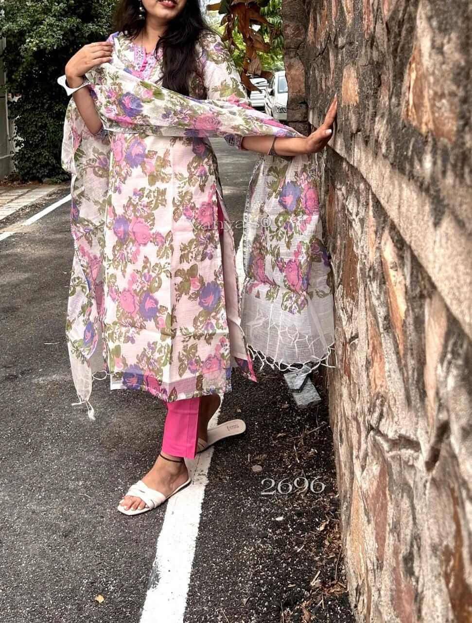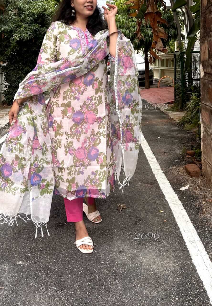Kota Doria hand block Kurti (inside cotton Lining) and Cotton Pant paired with matching colours hand block doria duppata