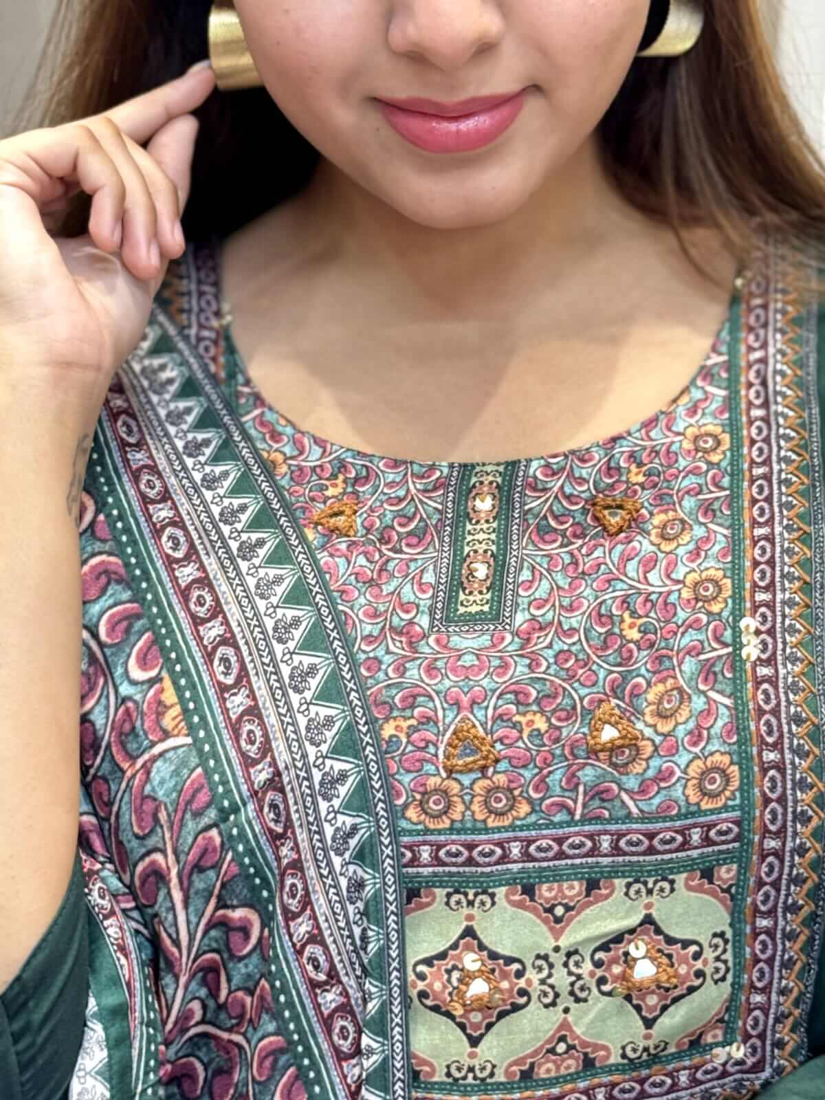 *Beautiful muslin patch and hand work on kurta*