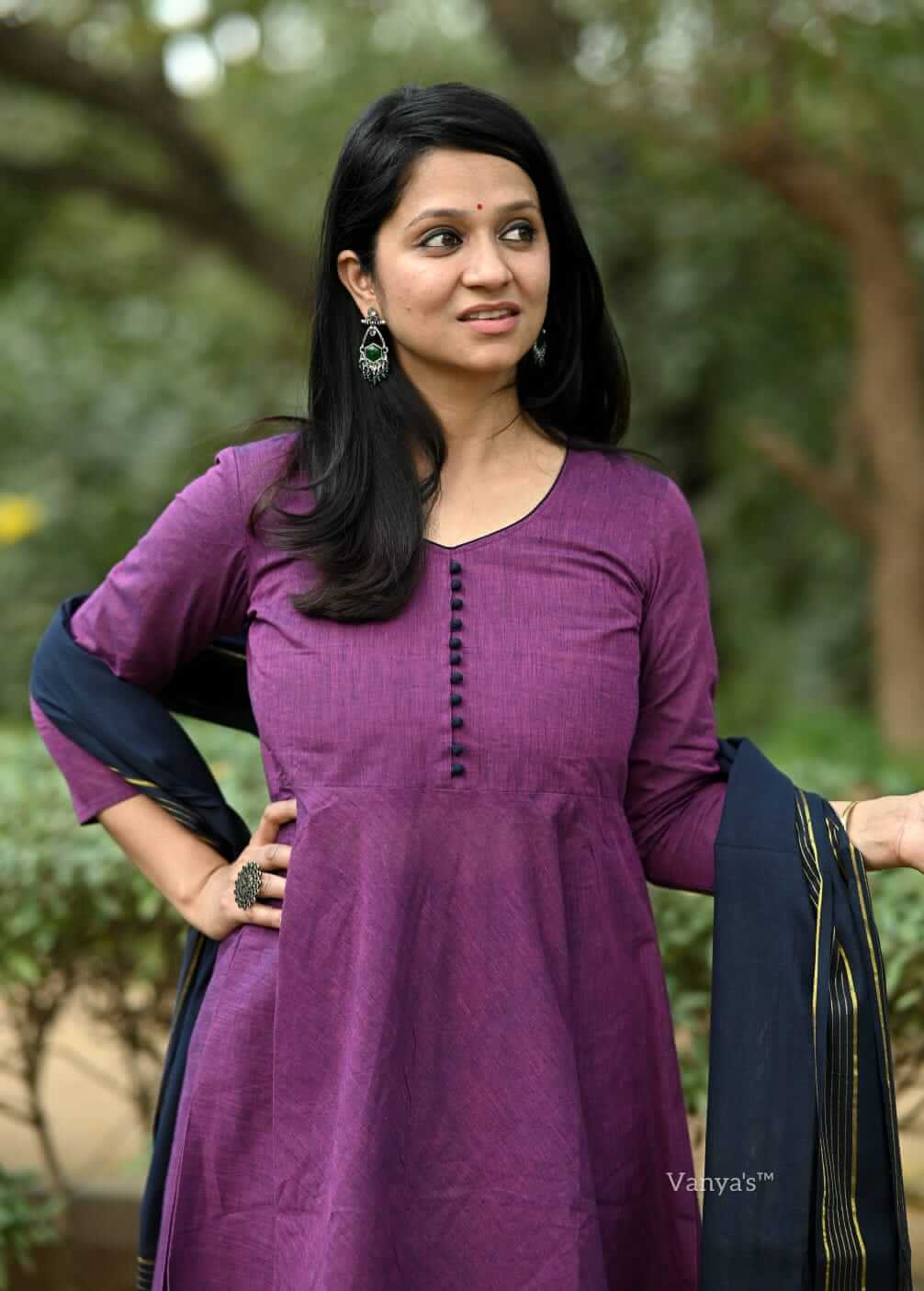 You will be so much in love with this *south handloom manglagiri outfit* for combinations of temple border self thread handloom butti south cotton anarkali kurta *(with attached mul lining till choli)* and south cotton pant paired with south cotton duppata self thread self weaving temple border add a unique vibe.