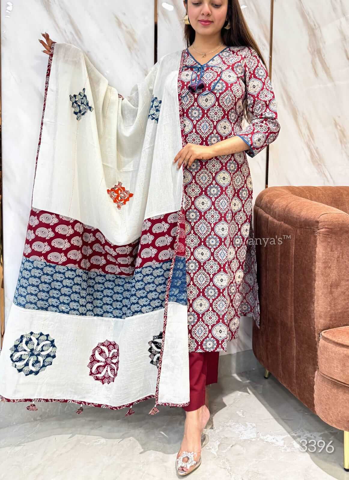 This season turn your everyday into special and strengthen your our *Pure cotton hand block ajrak suits". An eyeful beauty *Applique cotton hand made duppata