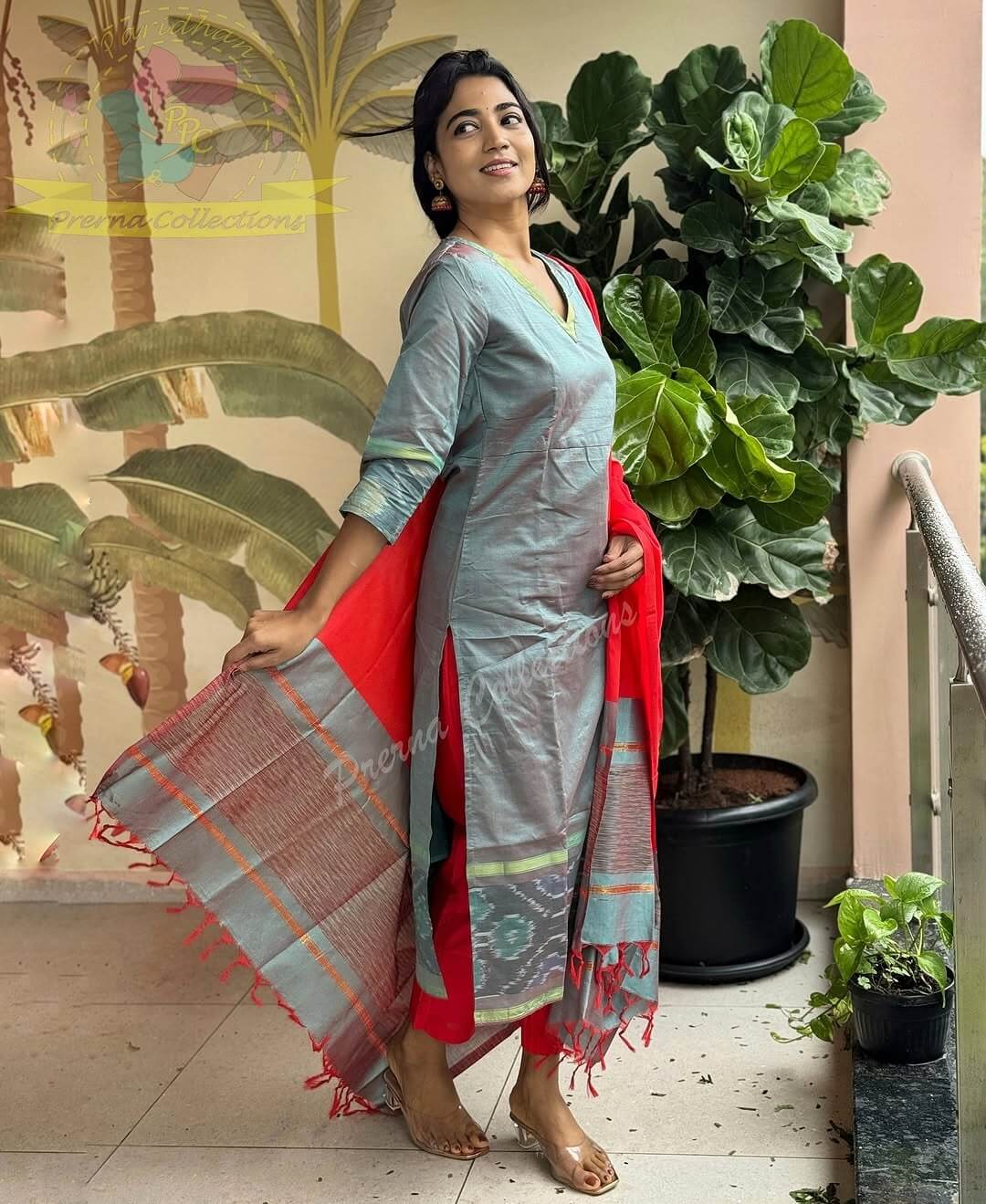🌸 Grace meets tradition in our Classy Pochampally Ikkath Silk Set! 🌸