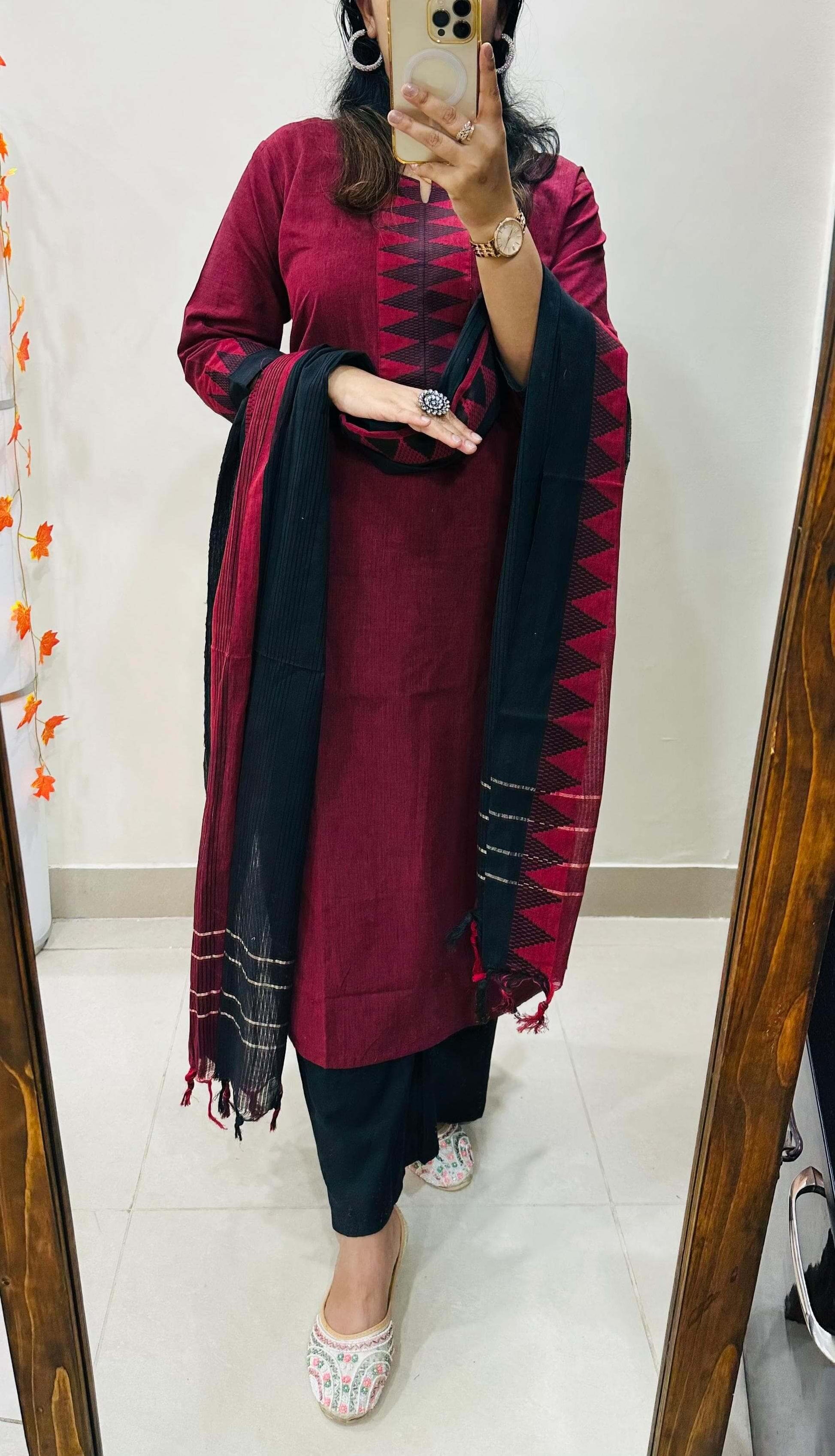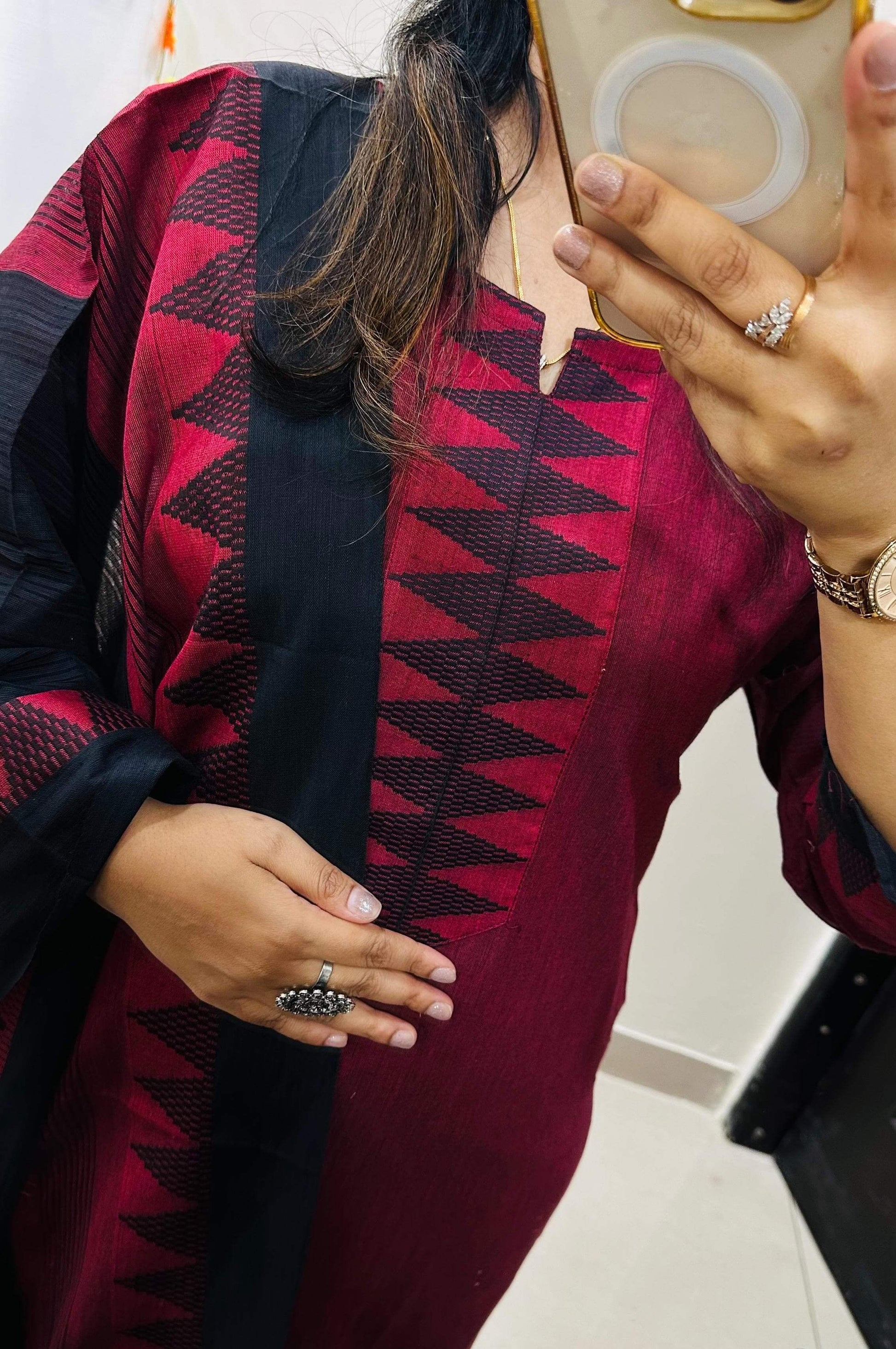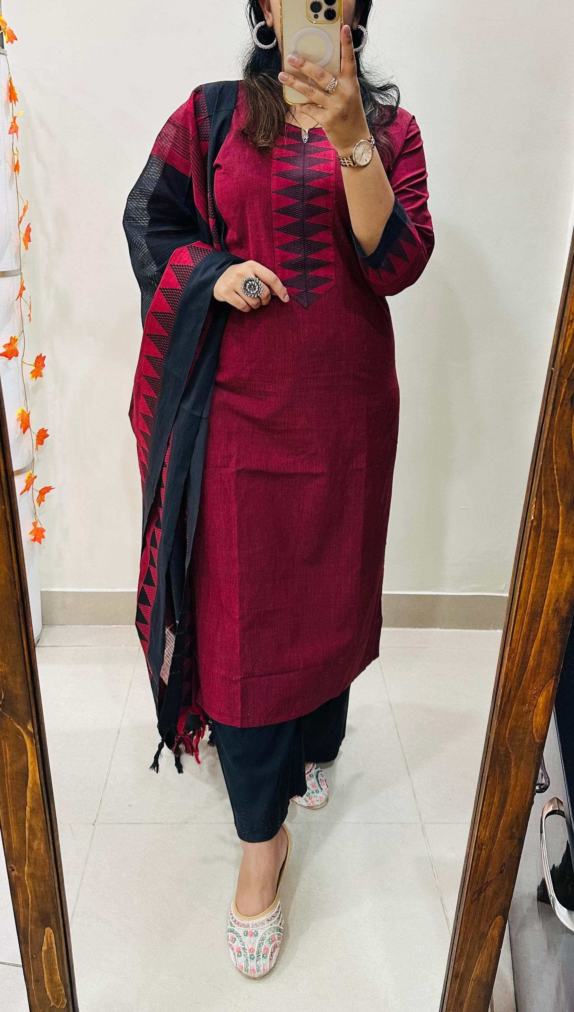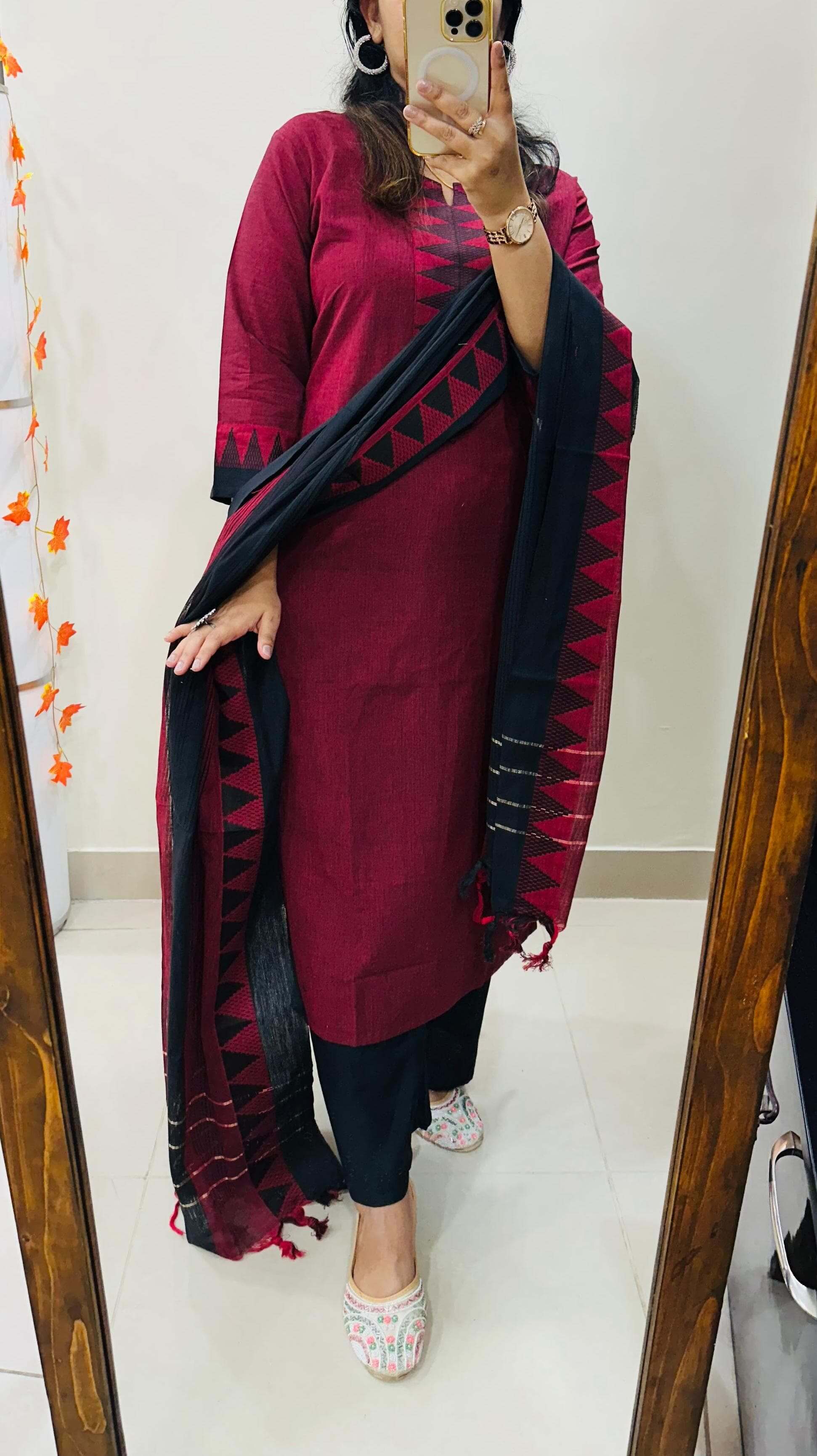 Pure South Cotton Handloom Border Kurta with Elegant Neck Detailing and Perfect Cotton Pant.
