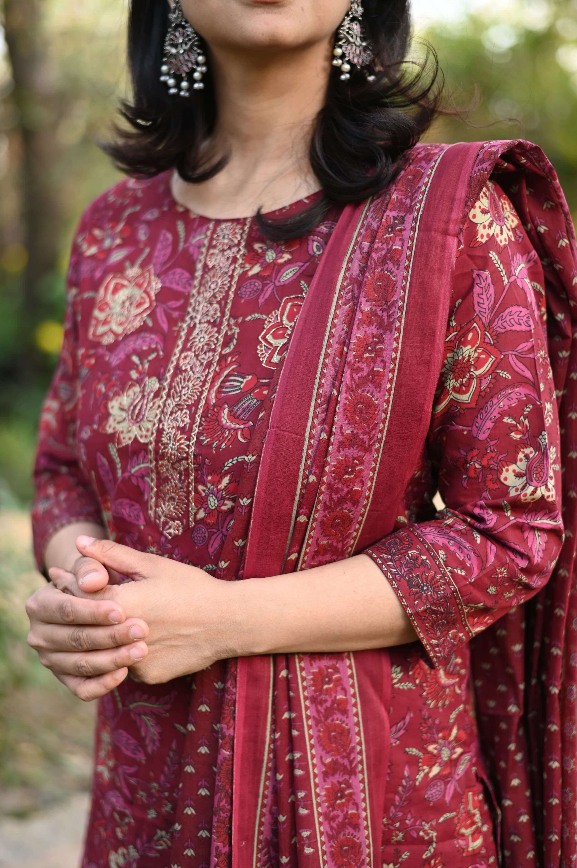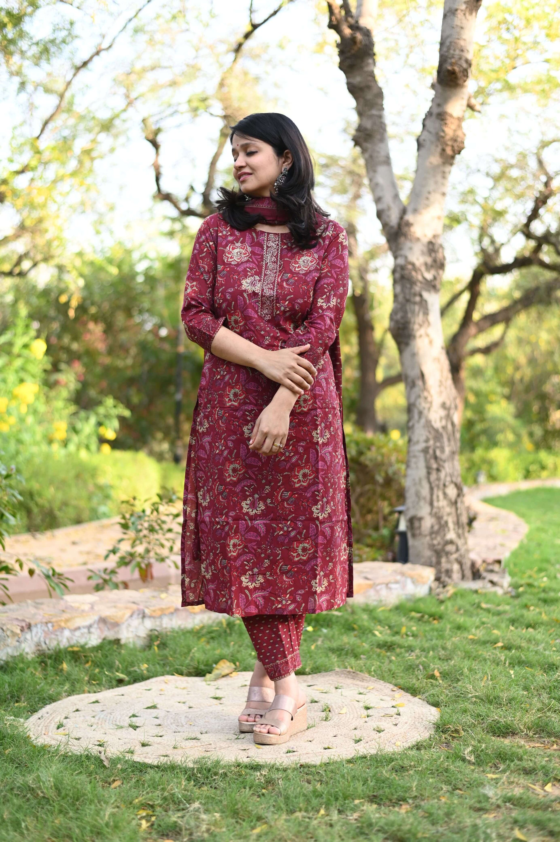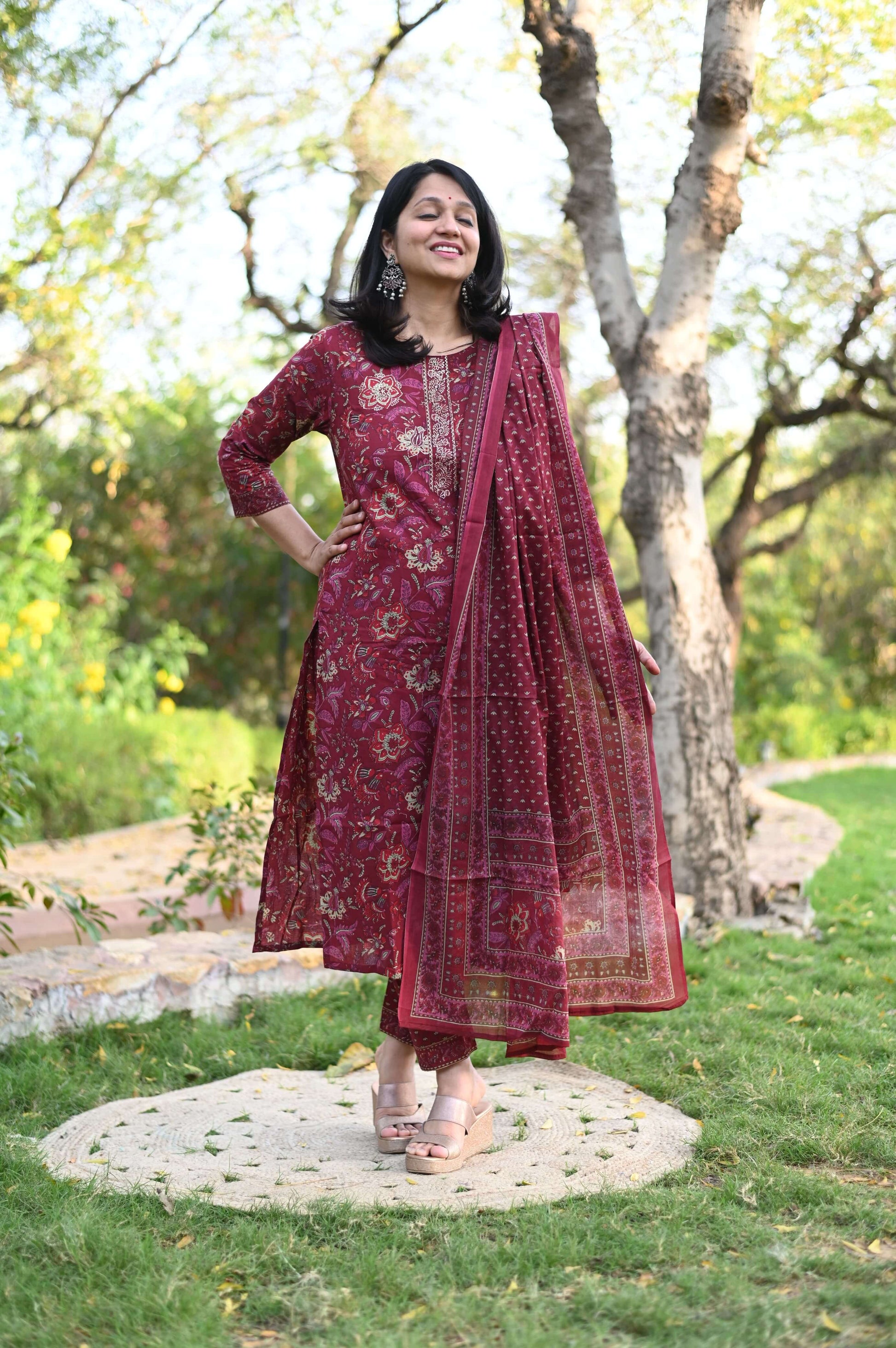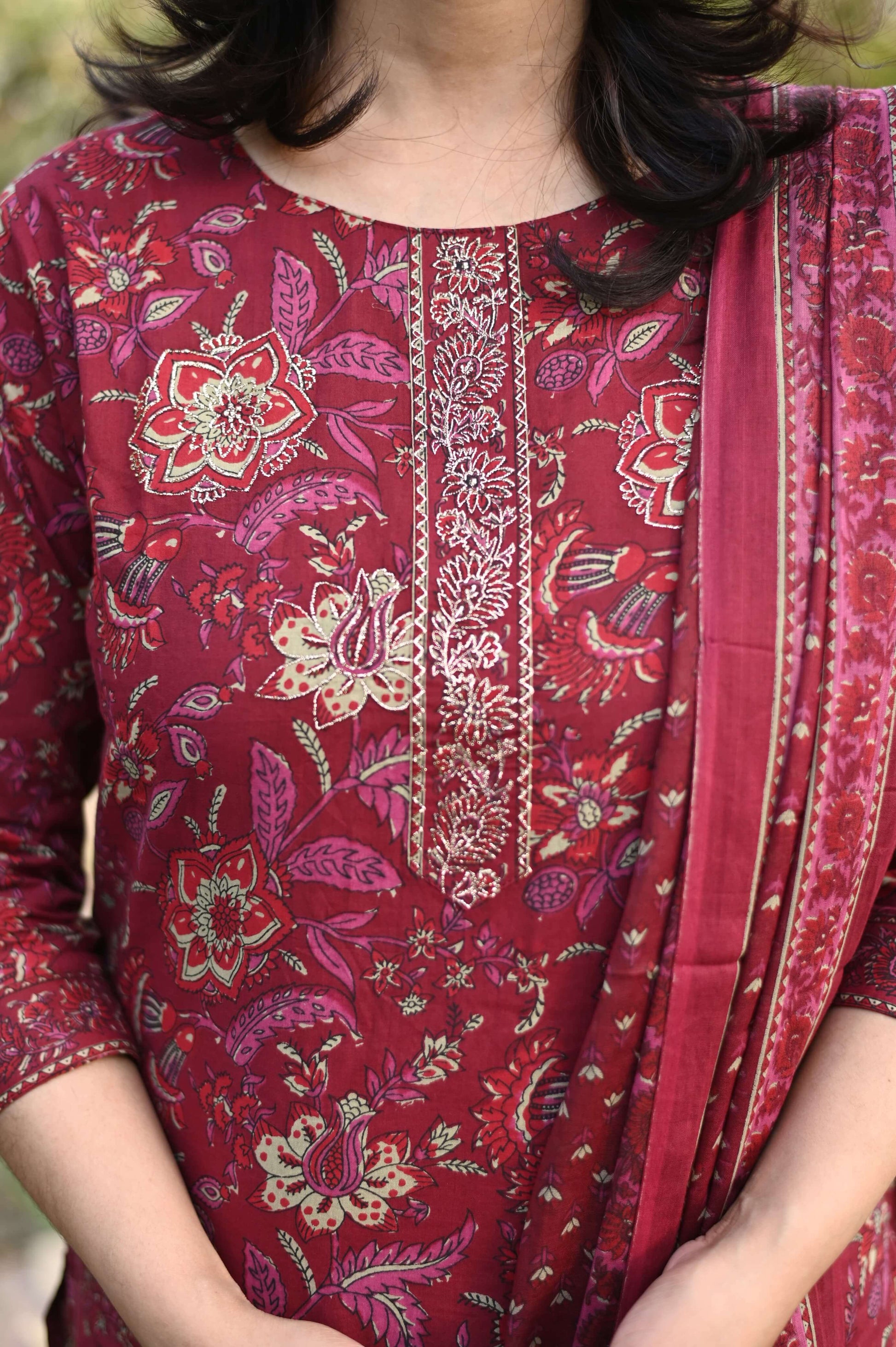 This beautiful suit is made from pure cotton and is adorned with embroidery for a polished, simple appearance, along with border detailing