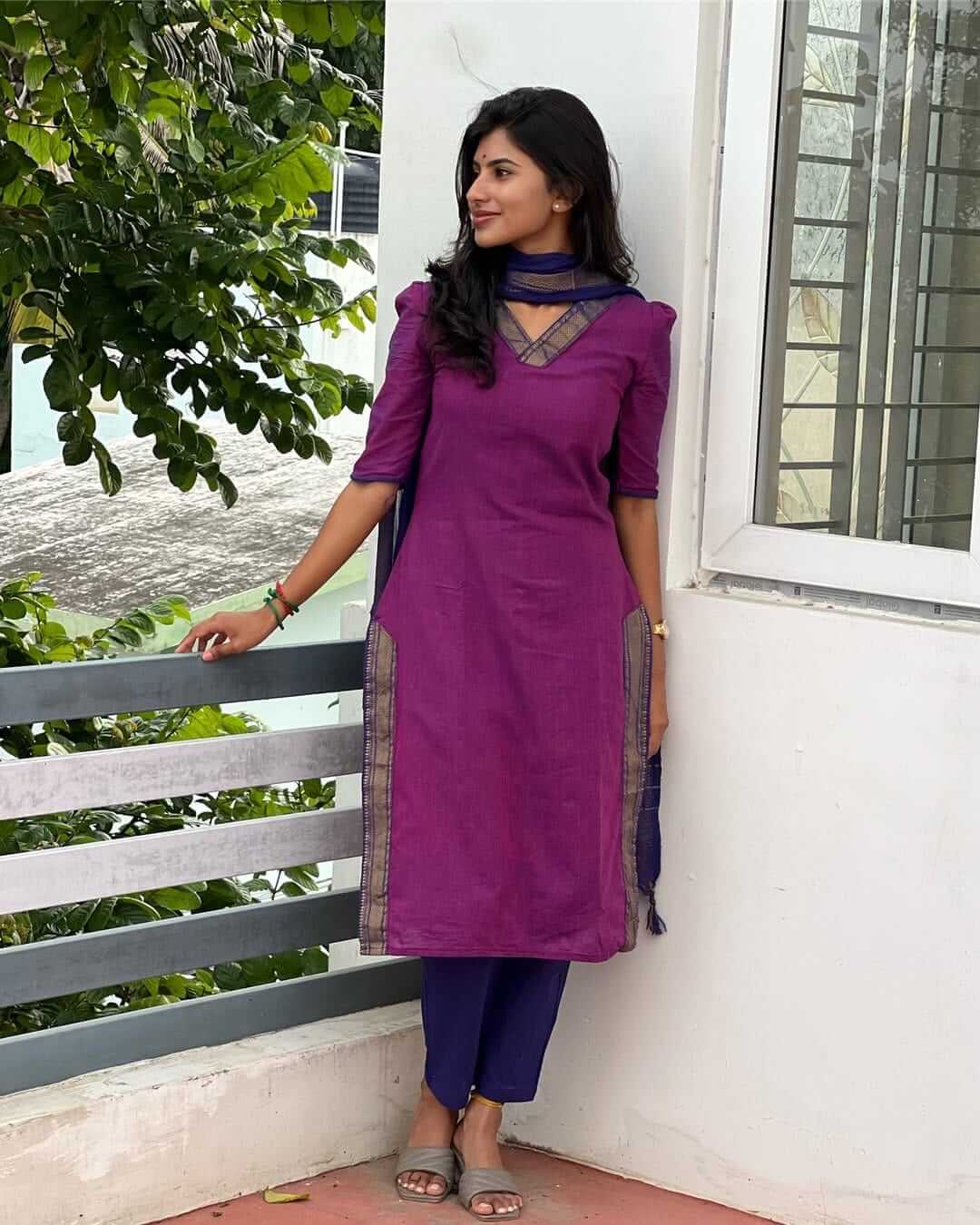 Pure South Cotton Handloom Border Kurta with Elegant Neck Detailing and Perfect Cotton Pant.